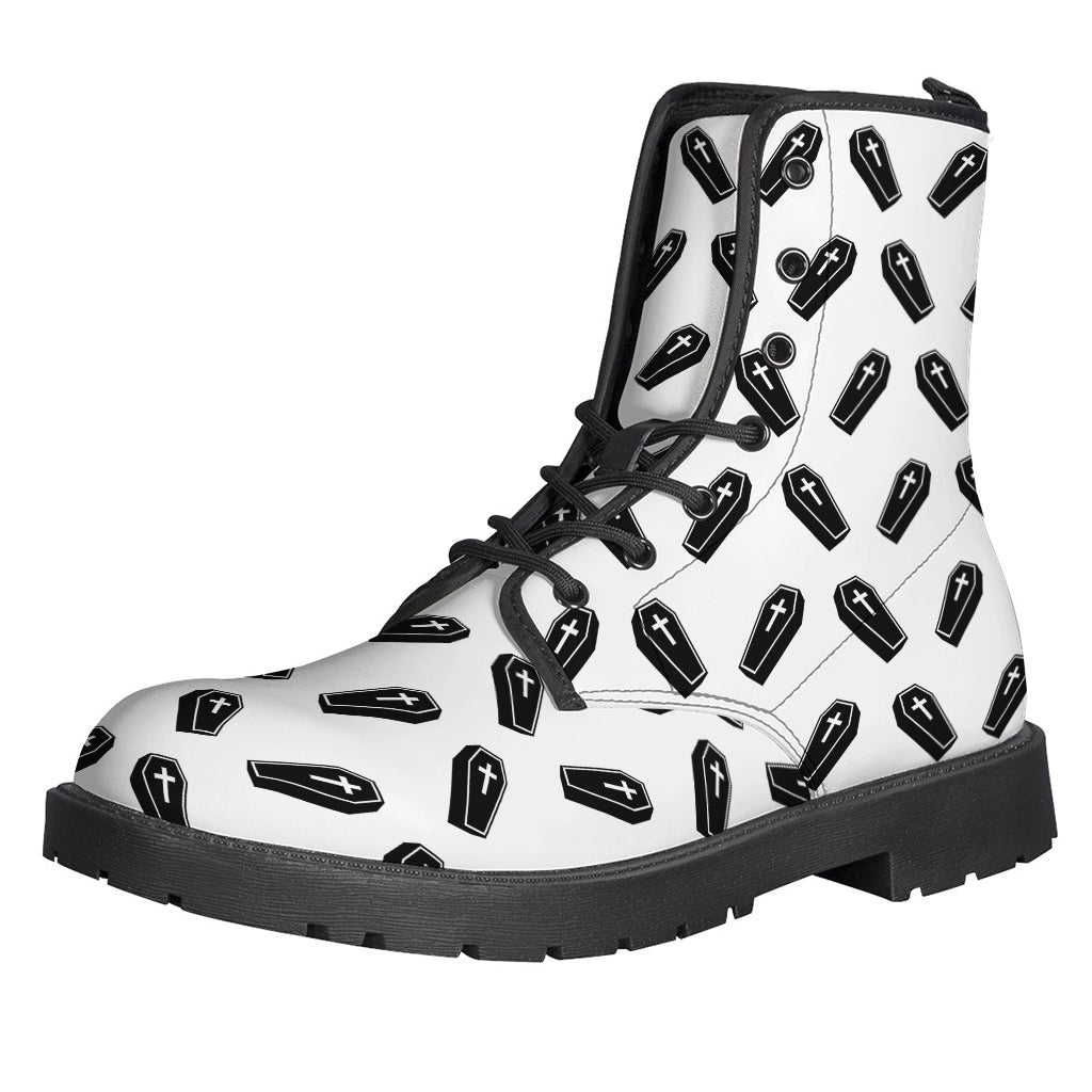 Groovy Coffin Patterned Leather Boots for the Modern Hippie