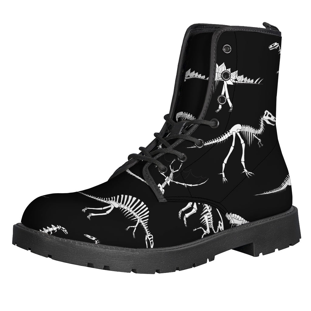 Groovy Dinosaur Fossil Print Leather Boots for Hippie Fashionistas