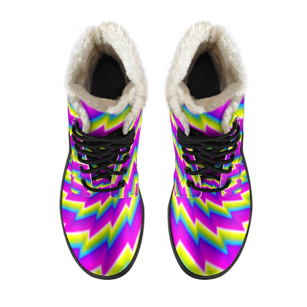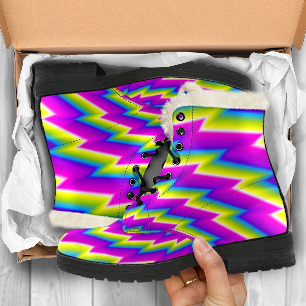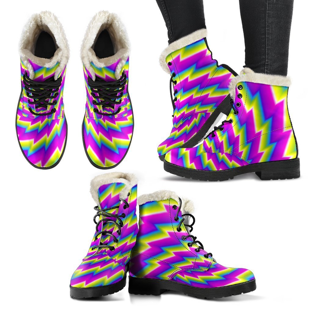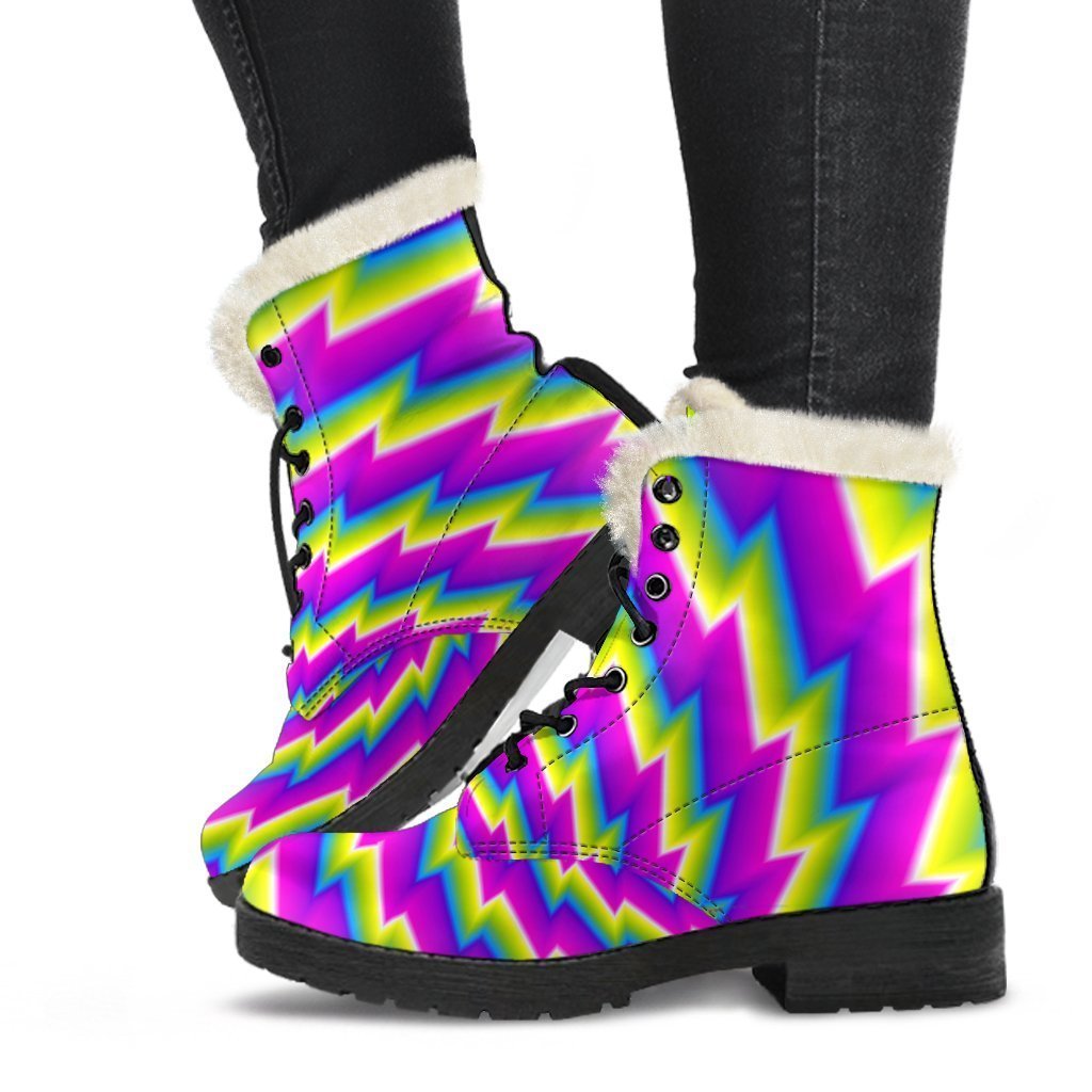 Get ready to channel your inner hippie with these Abstract Twisted Moving Optical Illusion Faux Fur Leather Boots. Crafted with a unique and eye-catching design, these boots feature a faux fur lining and leather outer material for a stylish and comfortable fit. The abstract optical illusion print adds a touch of whimsy and intrigue to your look, making them perfect for pairing with your favorite bohemian-inspired outfits. Whether you're heading to a music festival or simply want to stand out from the crowd, these boots are sure to make a statement. Embrace your free spirit and add a touch of retro flair to your wardrobe with these hippie-inspired boots.
