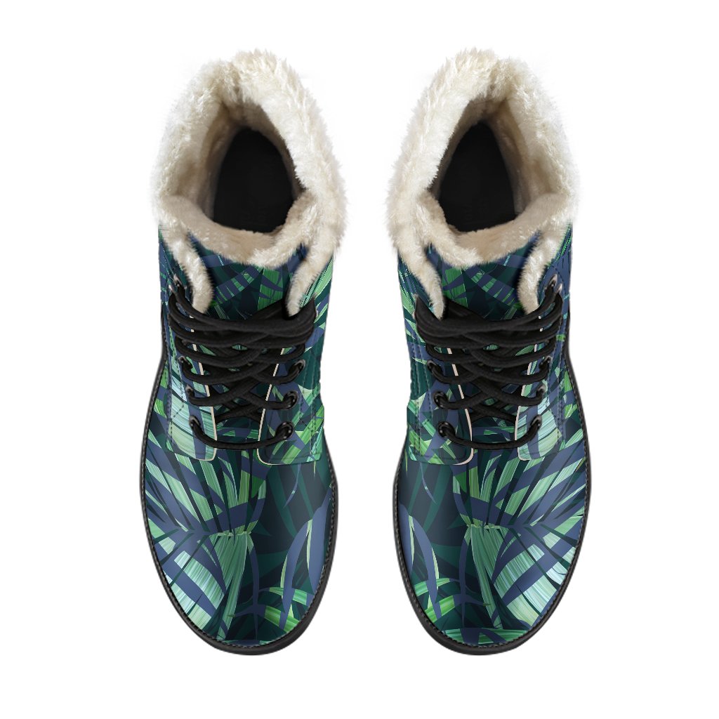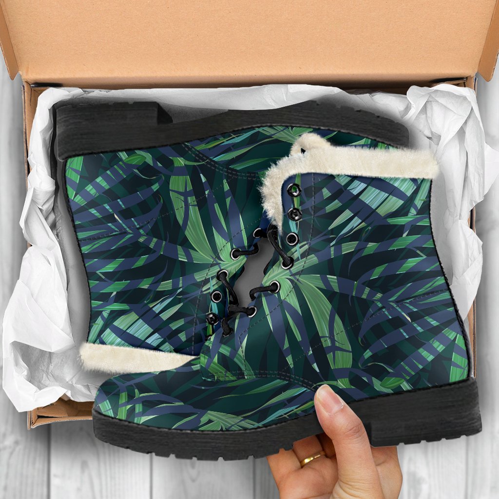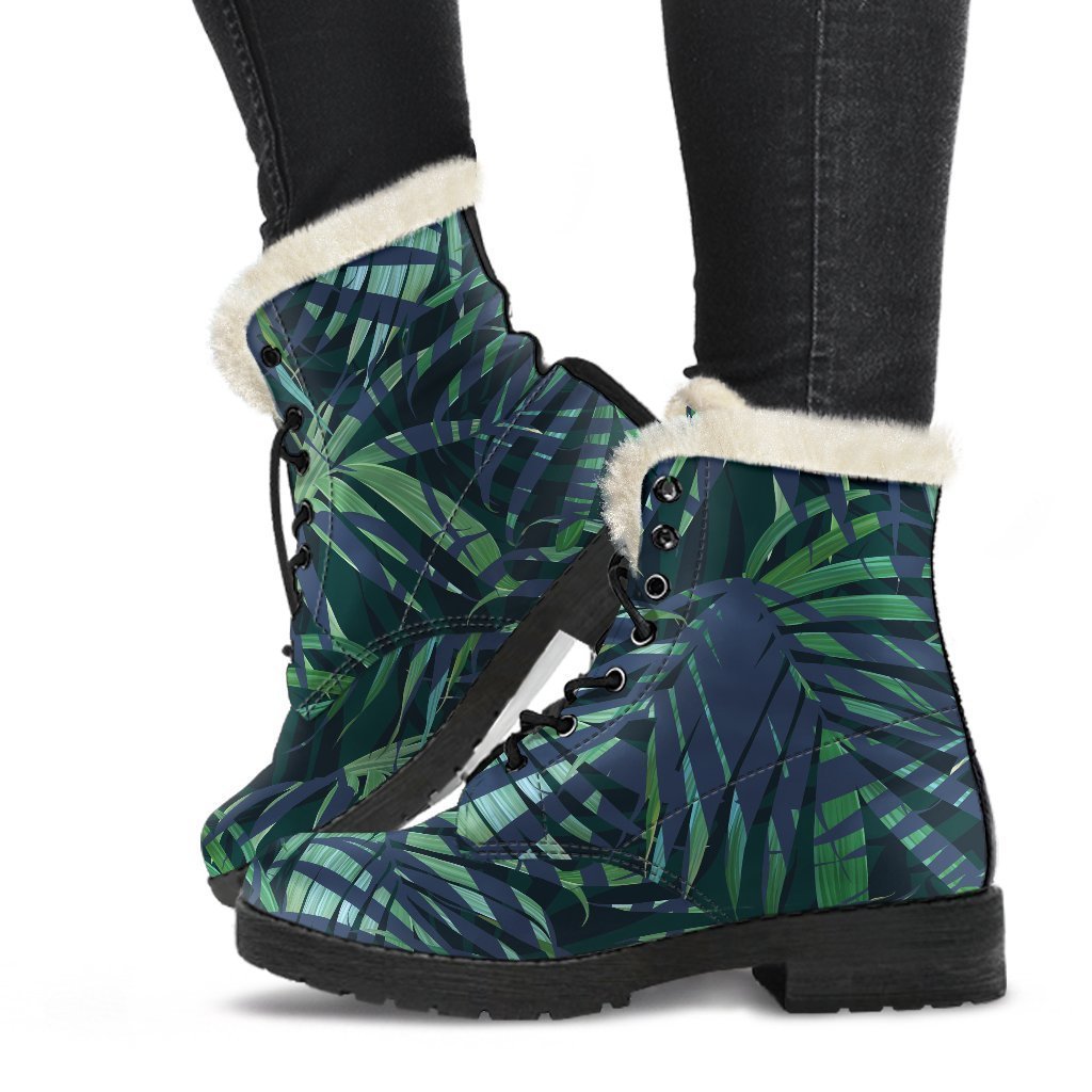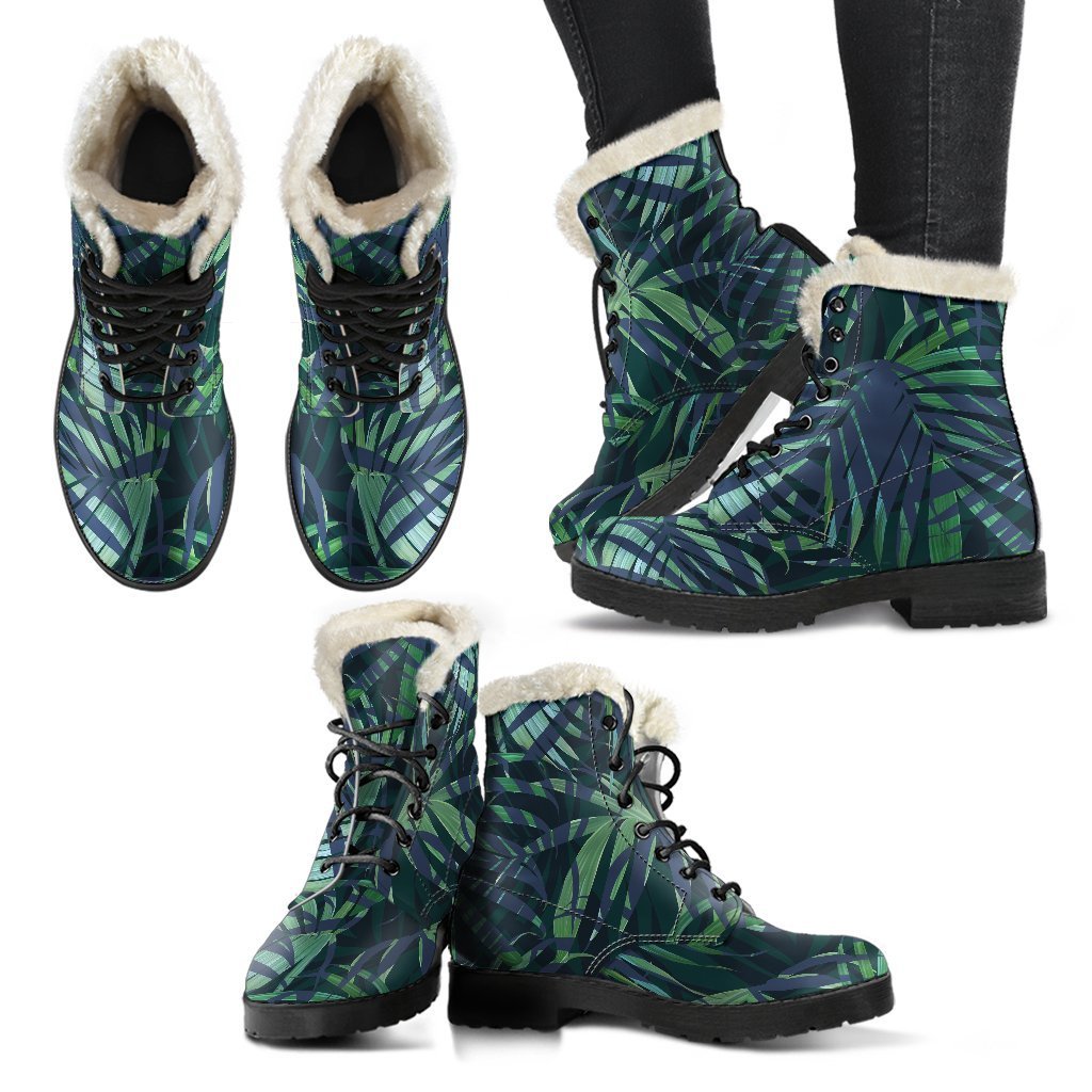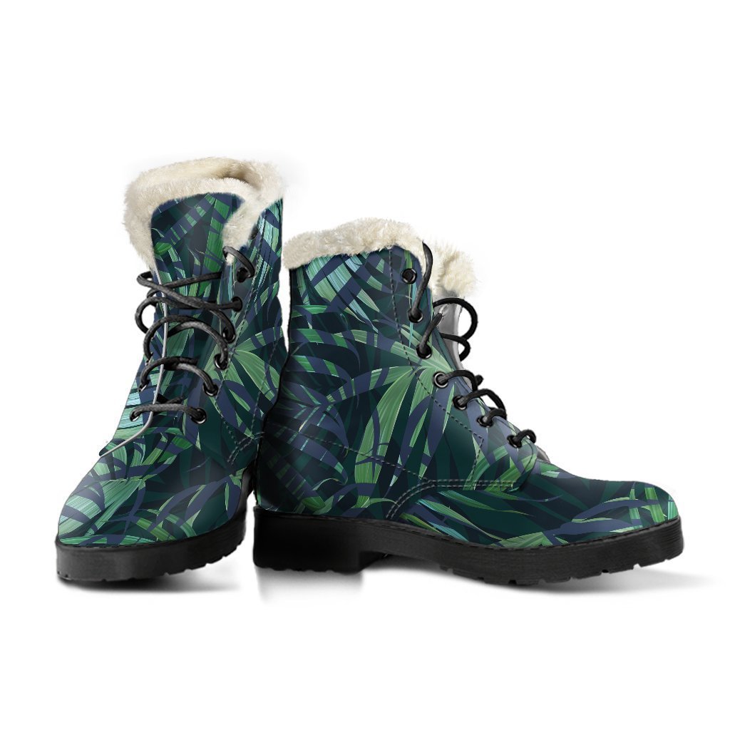 Get in touch with your inner hippie with these Dark Tropical Palm Leaves Pattern Print Faux Fur Leather Boots from Gear Frost. These unique and eye-catching boots are perfect for those who love to express themselves through their fashion choices. The faux fur and leather combination adds a fun and luxurious touch to any outfit, while the tropical palm leaves pattern print gives off a cool and laid-back vibe. Whether you're heading to a music festival or just want to add a touch of bohemian flair to your everyday style, these boots are sure to turn heads and make a statement. Step out in style and embrace your inner flower child with these fantastic hippie-inspired boots.