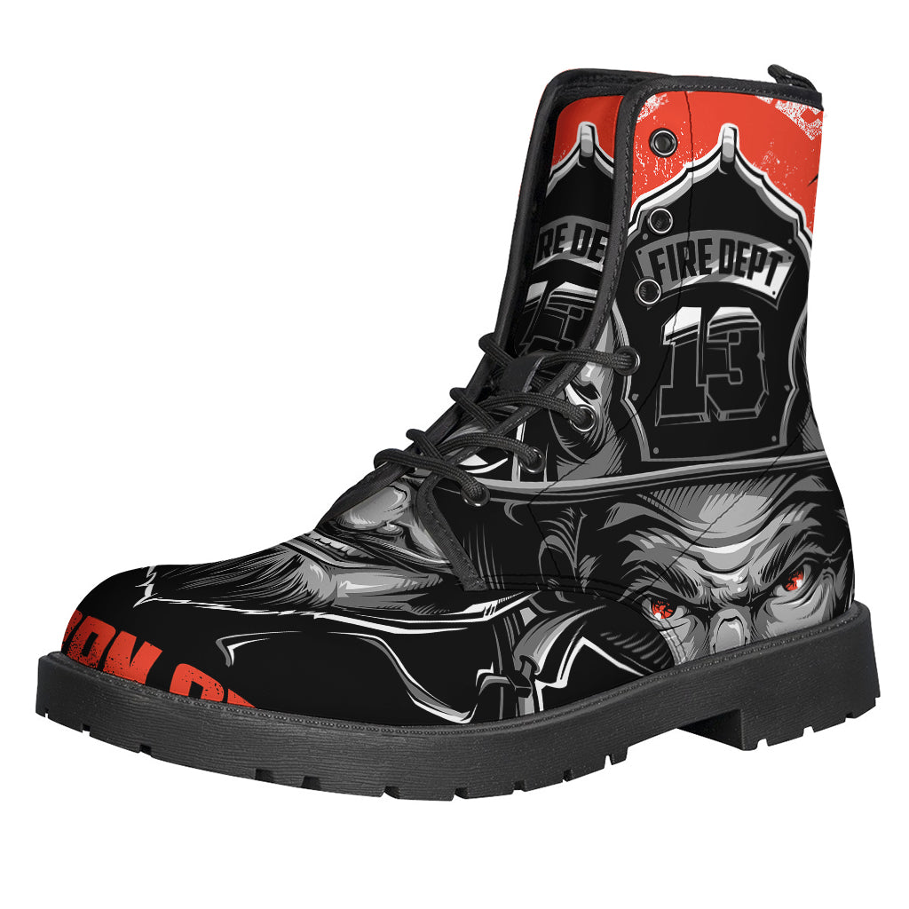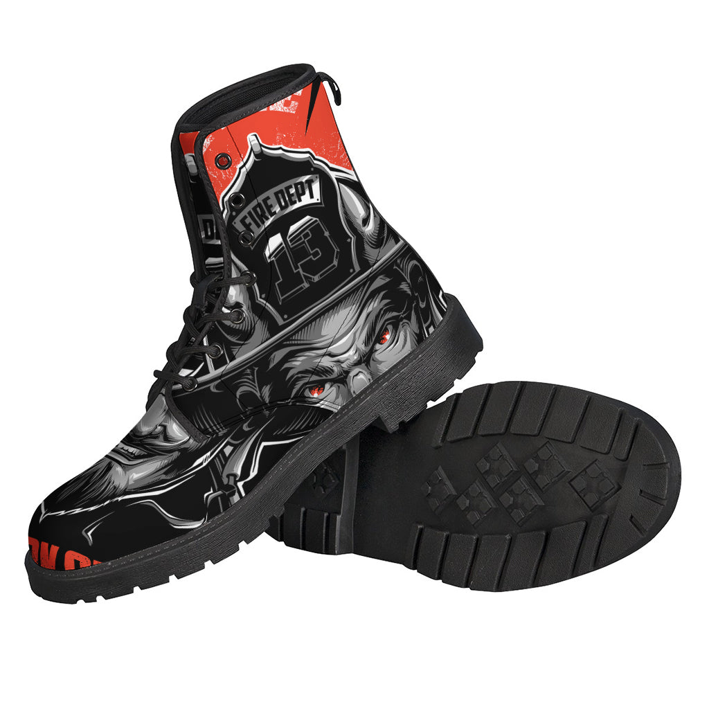 Embrace your inner free spirit with these stunning Hippies Leather Lightweight Boots. Made from high-quality leather, these boots feature a colorful firefighter devil print that will make a bold statement wherever you go. The lightweight construction ensures all-day comfort, while the durable materials ensure long-lasting wear. Perfect for adding a touch of bohemian style to any outfit, these boots are a must-have for any modern-day hippie. Whether you're hitting up a music festival or just strolling through the city streets, these boots are sure to turn heads and spark conversations. Channel your inner hippie and rock these unique boots with confidence and style.