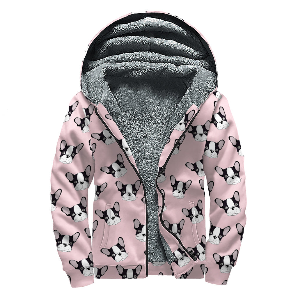 Groovy French Bulldog Sherpa-Lined Zip Up Hoodie for Free-Spirited Hippies