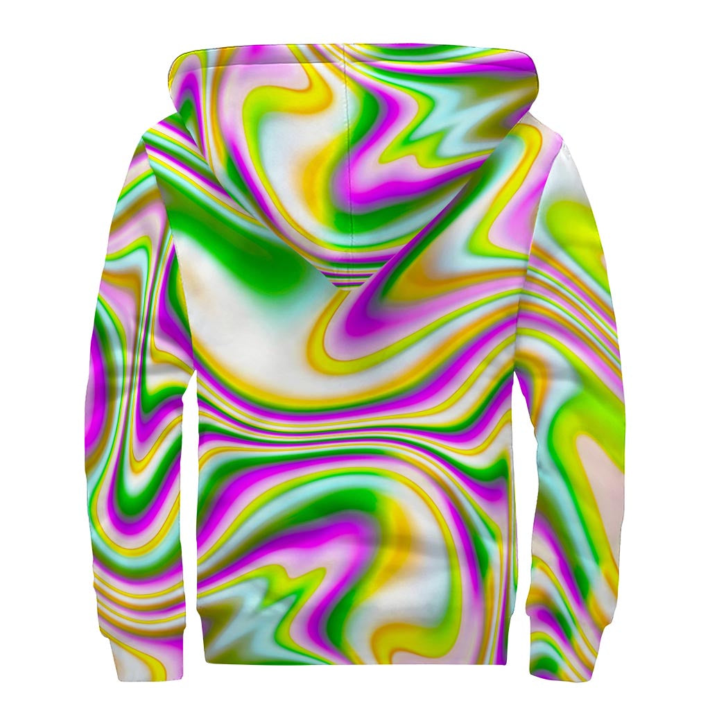 Embrace your inner hippie with this abstract holographic liquid trippy print Sherpa lined zip up hoodie. This cozy and unique hoodie is the perfect addition to your eclectic wardrobe, featuring vibrant colors and a psychedelic print that is sure to turn heads. The Sherpa lining provides extra warmth and comfort, making it ideal for cool evenings spent outdoors or lounging around the house. Whether you're attending a music festival, hiking in the mountains, or simply expressing your free-spirited style, this hoodie is a must-have for any hippie at heart.