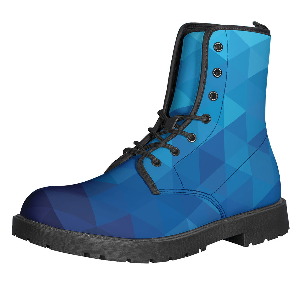 These stylish and unique Hippies Leather Lightweight Boots are perfect for those who love to embrace their inner hippie spirit. Featuring a blue geometric triangle pattern print, these boots are sure to make a statement wherever you go. The lightweight construction makes them comfortable for all-day wear, while the high-quality leather material ensures durability and long-lasting style. Add a touch of bohemian flair to your wardrobe with these eye-catching boots that are perfect for music festivals, outdoor adventures, or simply adding a pop of color to your everyday outfit. Step out in style and show off your free-spirited personality with these Hippies Leather Lightweight Boots.