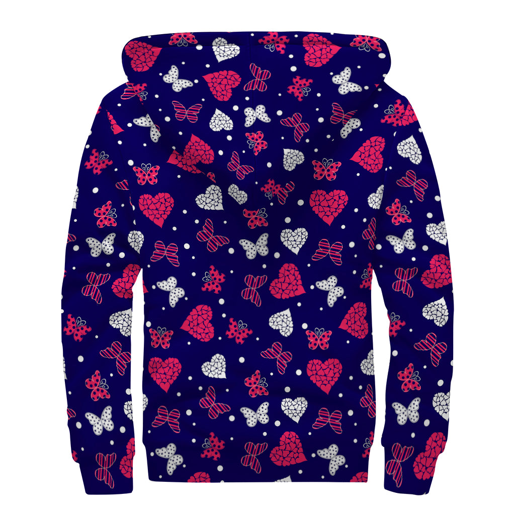 Embrace your inner flower child with this Hippies Sherpa Lined Zip Up Hoodie from GearFrost. Featuring a unique girly heart and butterfly pattern print, this hoodie is perfect for adding a touch of bohemian flair to your wardrobe. The Sherpa lining adds extra warmth and comfort, making it ideal for cozy evenings by the campfire or chilly festival nights. Whether you're a free spirit at heart or just love the relaxed, carefree style of the hippie movement, this hoodie is sure to become a go-to favorite in your closet.