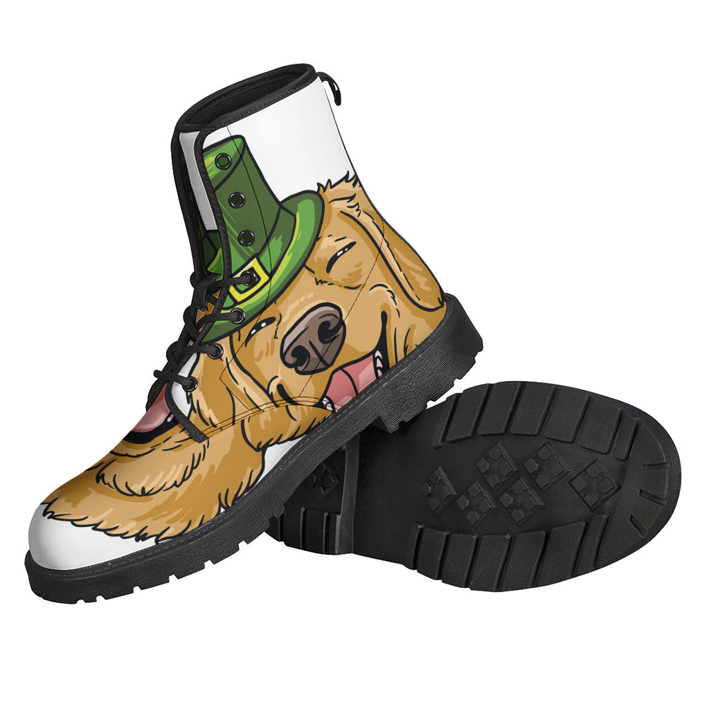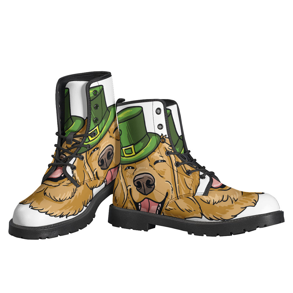 Embrace your inner hippie with these unique Leather Lightweight Boots featuring a vibrant and whimsical Patrick's Day Golden Retriever print. Made for those who love to express their individuality and stand out from the crowd, these boots are perfect for adding a touch of bohemian flair to your outfit. Crafted from high-quality leather, they are durable, comfortable, and fashion-forward. Whether you're heading to a festival, a concert, or just out and about, these boots are sure to turn heads and start conversations. Embrace your free-spirited style with these one-of-a-kind hippie Leather Lightweight Boots.
