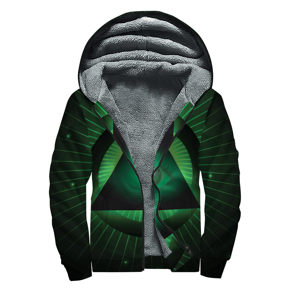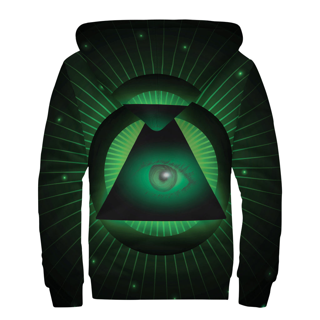 This Sherpa Lined Zip Up Hoodie is a must-have for any hippie's wardrobe. With a unique and stylish green Masonic eye print on the front, this hoodie exudes a cool and laid-back vibe. The Sherpa lining provides extra warmth and comfort, making it perfect for chilly days and nights. The zip-up design and hood add a casual and practical touch, while the relaxed fit is great for layering over your favorite t-shirts and tops. Whether you're heading to a music festival, hanging out with friends, or just running errands, this hoodie is sure to keep you looking and feeling great.