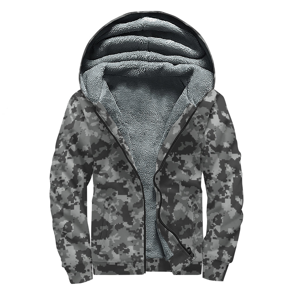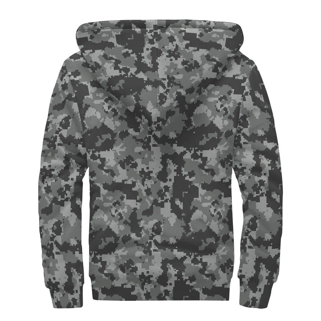 This Sherpa Lined Zip Up Hoodie is the perfect addition to any hippie's wardrobe. The grey digital camo pattern print adds a unique and stylish touch, while the Sherpa lining provides extra warmth and comfort. Whether you're headed to a music festival, camping in the great outdoors, or simply lounging around at home, this hoodie will keep you cozy and looking cool. Embrace your inner hippie vibes with this trendy and functional piece of clothing. It's perfect for staying warm and looking effortlessly stylish all year round.