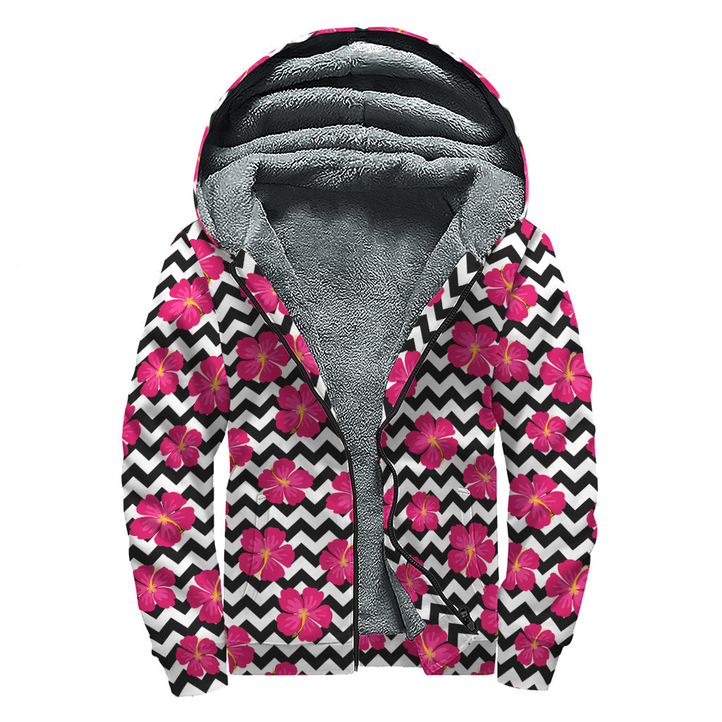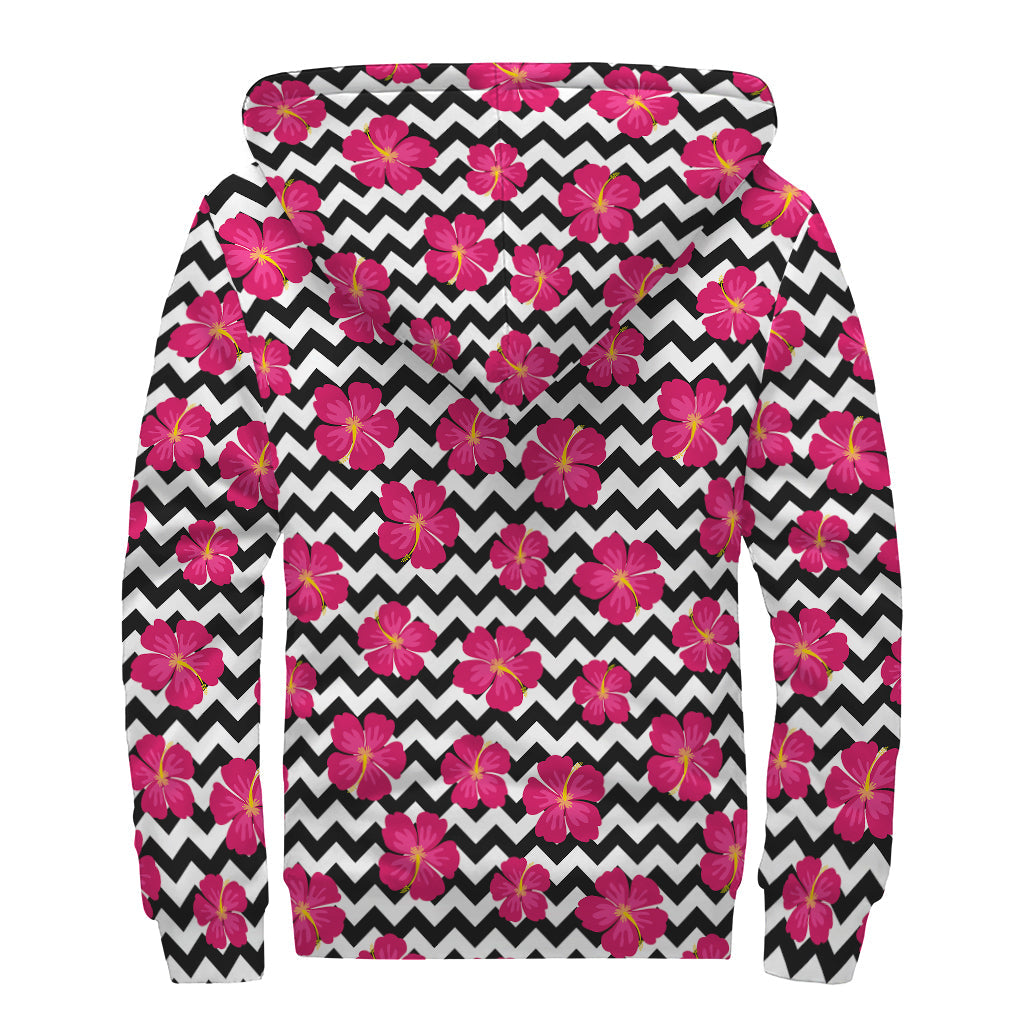 Get ready to channel your inner free spirit with this Sherpa Lined Zip Up Hoodie inspired by hippie style. The Pink Hibiscus Zigzag Pattern Print adds a fun and vibrant touch to this cozy hoodie, perfect for those chilly days when you want to stay warm while still looking stylish. The soft sherpa lining will keep you extra warm and comfortable, making this hoodie a must-have for any hippie at heart. Whether you're relaxing at a music festival or simply hanging out with friends, this hippie-inspired hoodie is sure to become a go-to favorite in your wardrobe.
