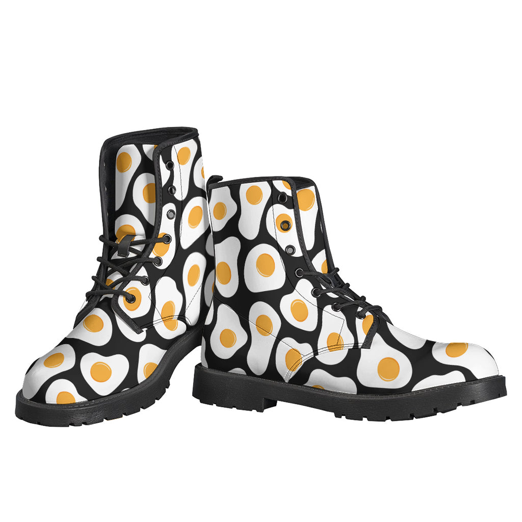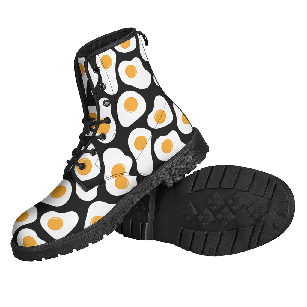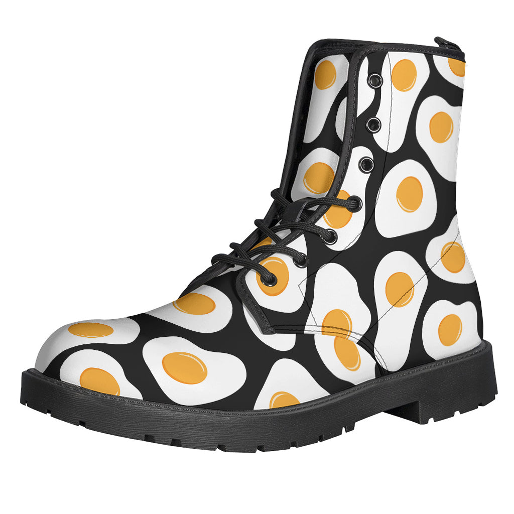 Step out in style with these groovy Black Fried Eggs Pattern Print Leather Boots from GearFrost. These boots are perfect for the free-spirited hippie in you, featuring a unique fried eggs pattern print that adds a fun and quirky touch to your outfit. Made from high-quality leather, these lightweight boots offer both style and comfort for all-day wear. Whether you're heading to a music festival, yoga class, or simply out and about, these boots are sure to turn heads and have you feeling like a true bohemian. Embrace your inner hippie and rock these Leather Lightweight Boots with confidence and flair. Peace, love, and style!