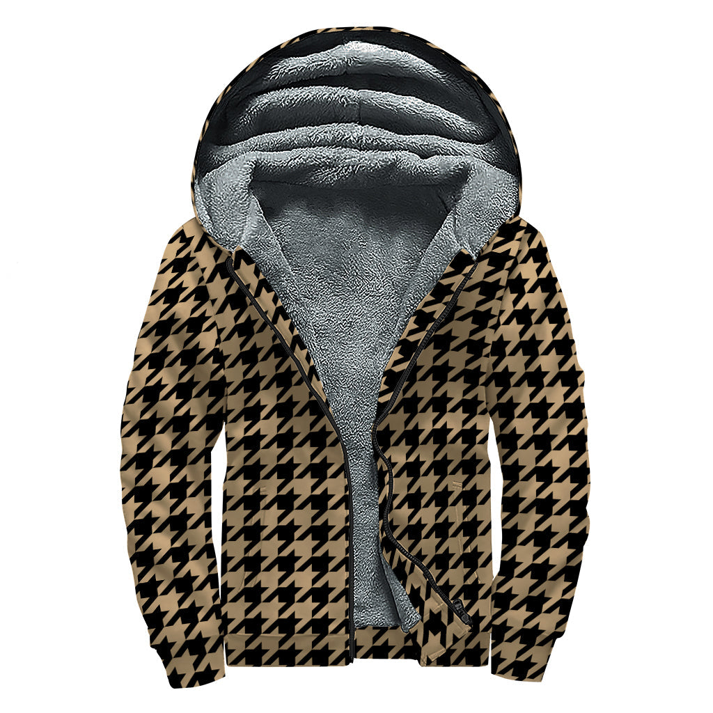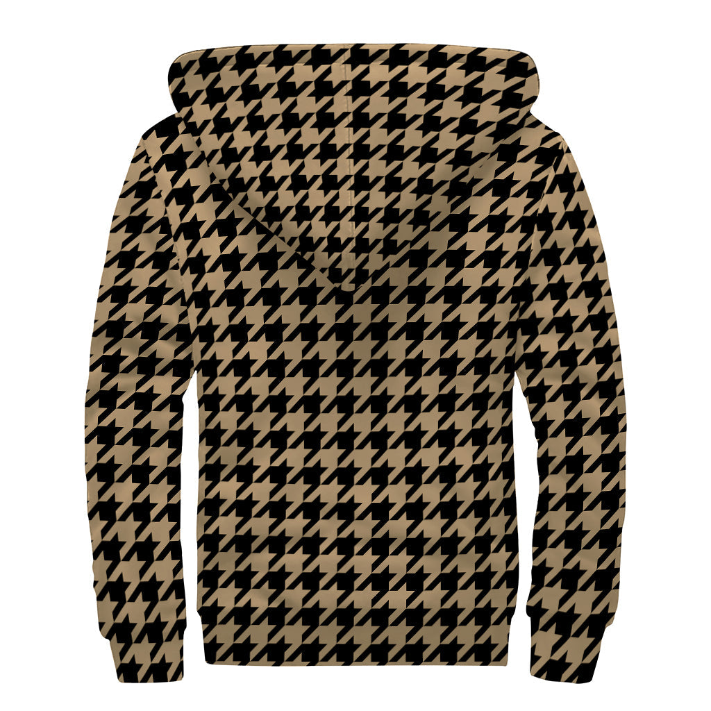 This Sherpa Lined Zip Up Hoodie is the perfect addition to any hippie's wardrobe. Featuring a unique brown and black houndstooth print, this hoodie exudes a retro and free-spirited vibe that is quintessentially hippie. The super soft Sherpa lining provides extra warmth and comfort, making it ideal for those chilly days and nights. The zip-up style allows for easy layering and the hood adds an extra cozy touch. Whether you're heading to a music festival, a drum circle, or just hanging out with friends, this Sherpa Lined Zip Up Hoodie is sure to keep you looking and feeling groovy.