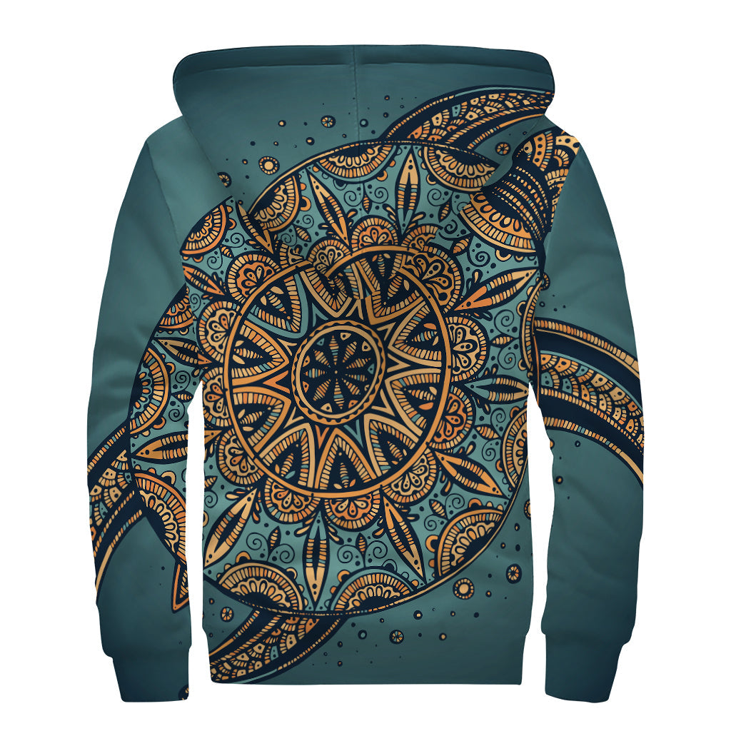 Embrace your inner hippie with this Tribal Sea Turtle Print Sherpa Lined Zip Up Hoodie! This cozy hoodie features a vibrant tribal sea turtle design that is sure to make a statement. The sherpa lining will keep you warm and comfortable, making it perfect for cozy nights around the campfire or chilly days at the beach. The zip-up front and hood add an extra layer of warmth and style. Whether you're heading to a music festival or just looking to add some bohemian flair to your wardrobe, this hoodie is a must-have for any free spirit.