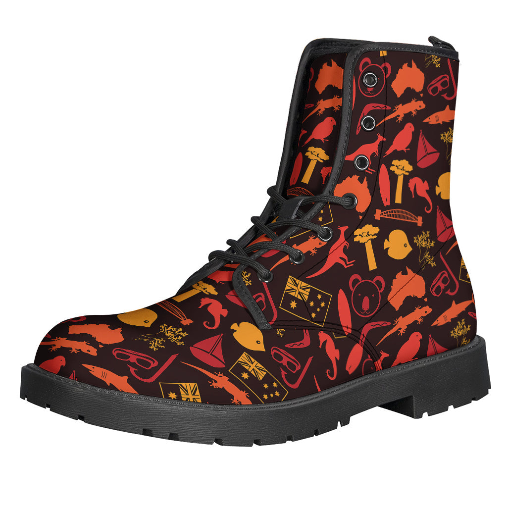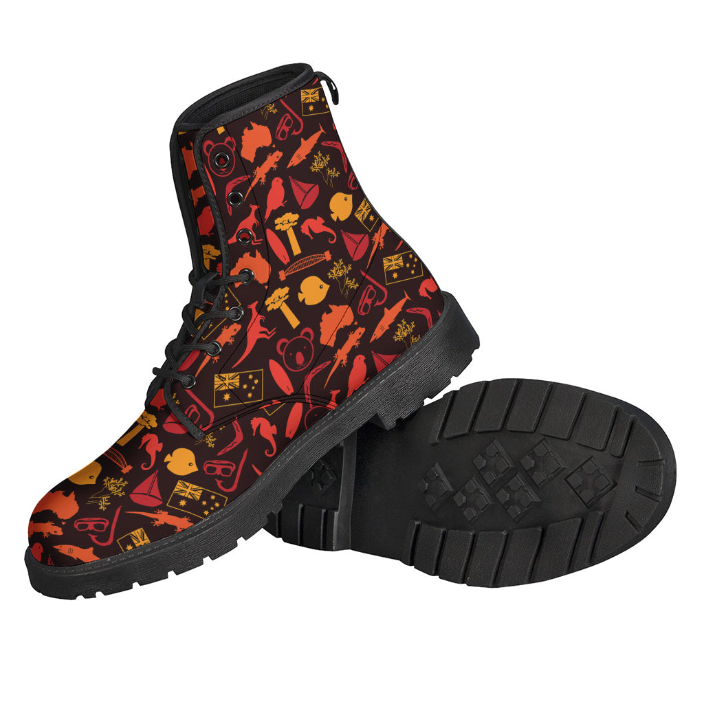 Whether you're trekking through the great outdoors or simply strolling through the city streets, these hippie-inspired leather boots are sure to become a staple in your wardrobe. Embrace your inner flower child and step out in style with these Australia Country Pattern Print Leather Lightweight Boots.