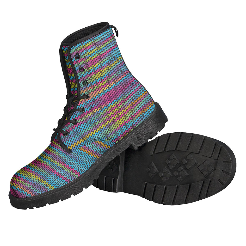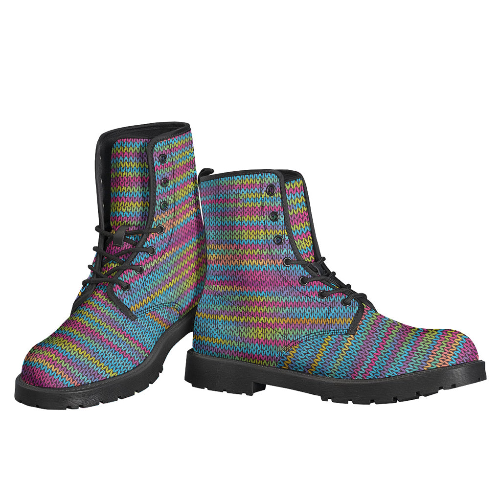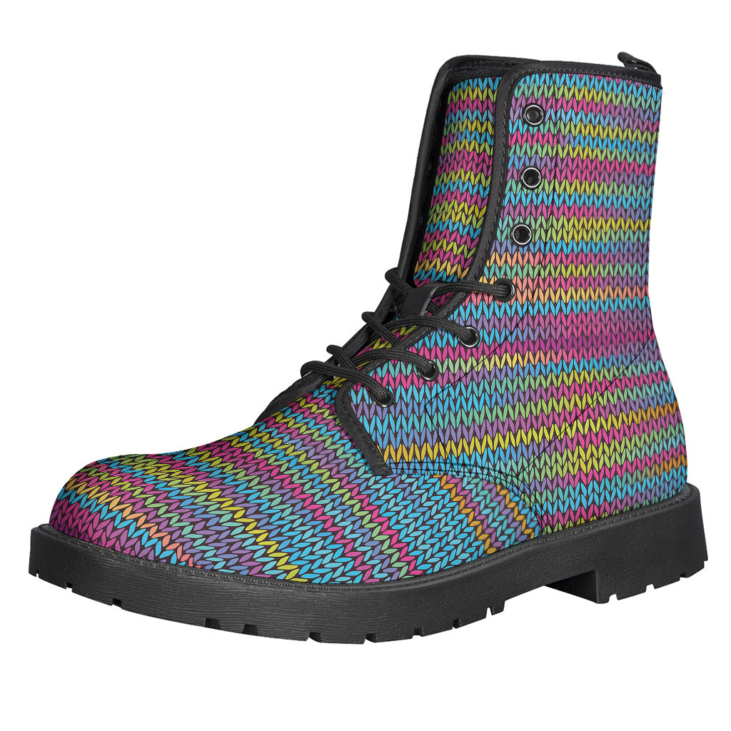 Get ready to embrace your inner free-spirited hippie with these colorful knitted pattern print leather boots. These lightweight boots combine style and comfort, making them perfect for long days of adventuring or dancing at music festivals. The vibrant knitted pattern adds a unique bohemian touch to any outfit, while the durable leather construction ensures they will last for many adventures to come. Whether you're hitting the open road or simply want to add a touch of boho flair to your wardrobe, these hippie leather boots are a must-have.