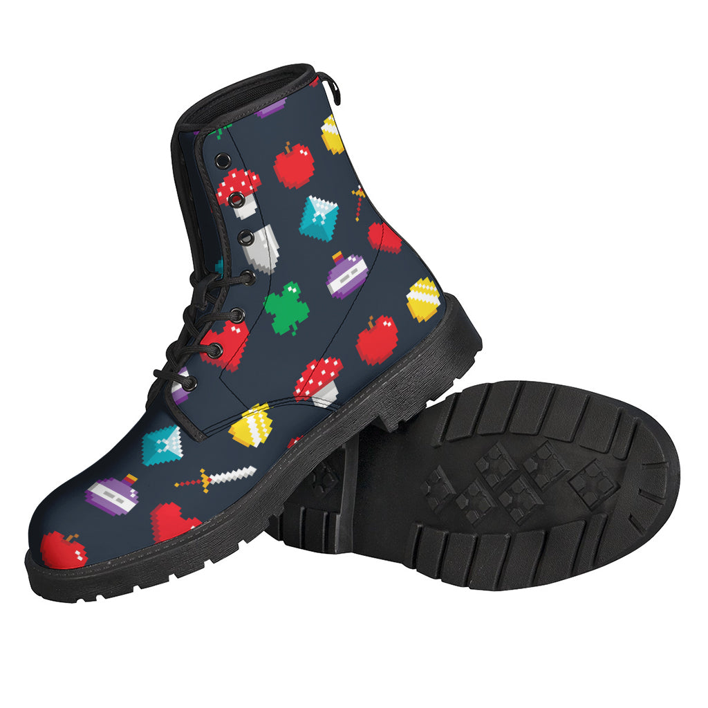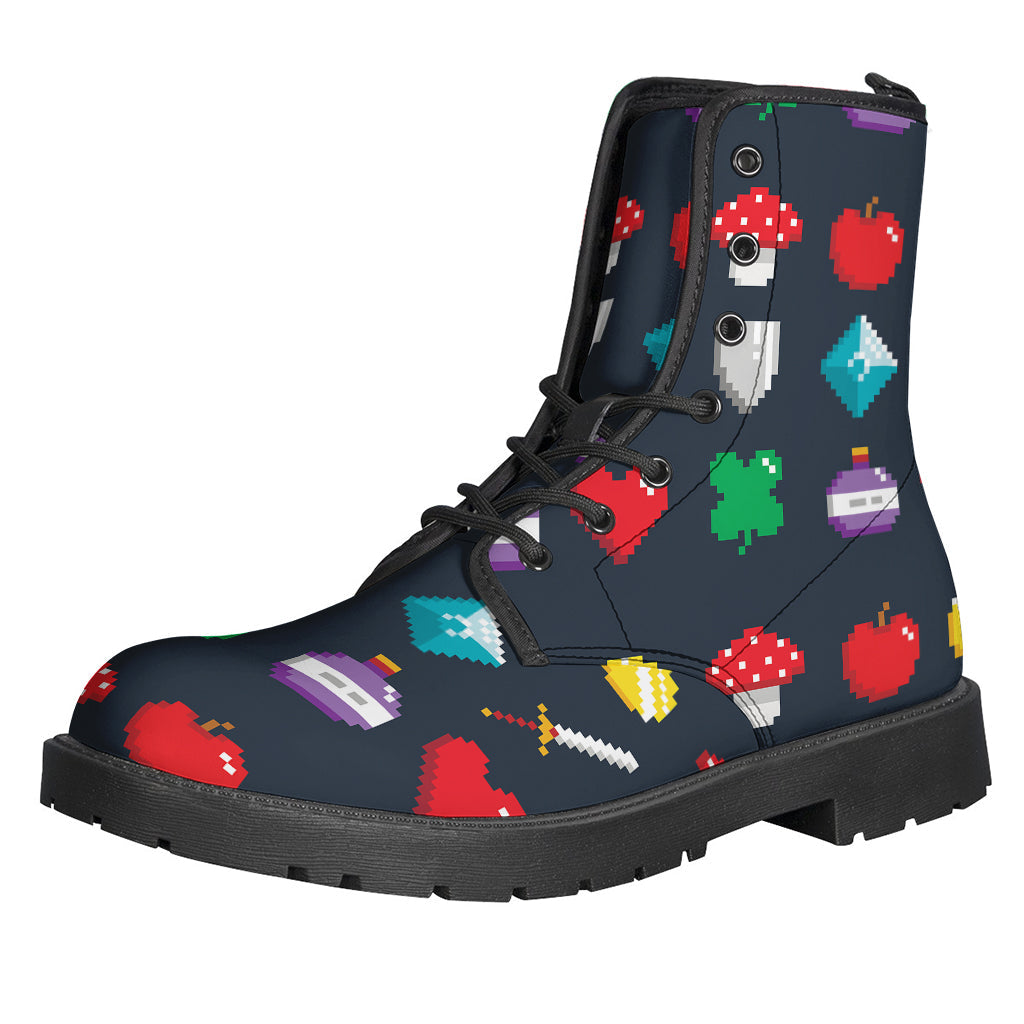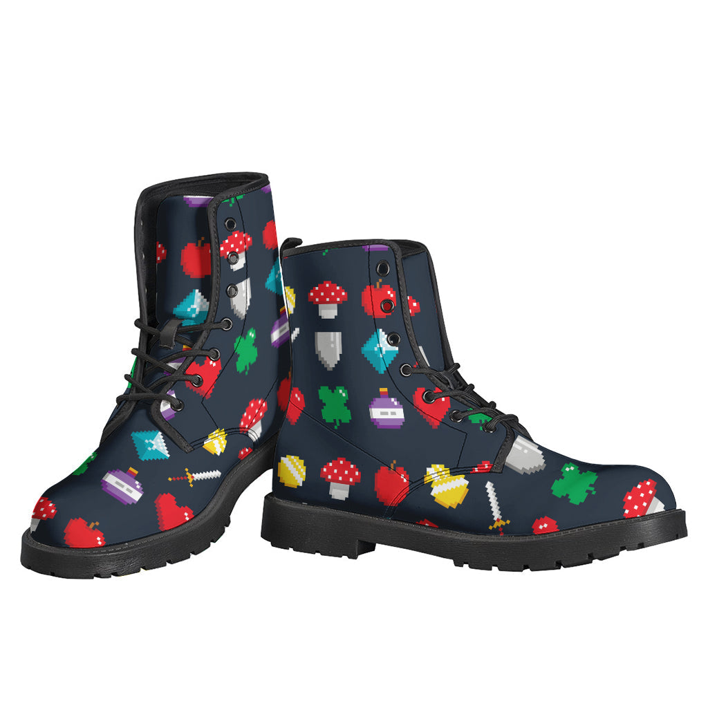 These hippie Leather Lightweight Boots are perfect for the free-spirited individual looking to express their unique style. Made from high-quality leather, these boots feature a fun and quirky 8-bit pixel game items print that will surely turn heads wherever you go. The lightweight construction makes them comfortable to wear all day long, while the durable materials ensure long-lasting quality. Whether you're exploring the great outdoors or dancing at a music festival, these boots will add a touch of whimsy to any outfit. Embrace your inner hippie and step out in style with these one-of-a-kind Leather Lightweight Boots.