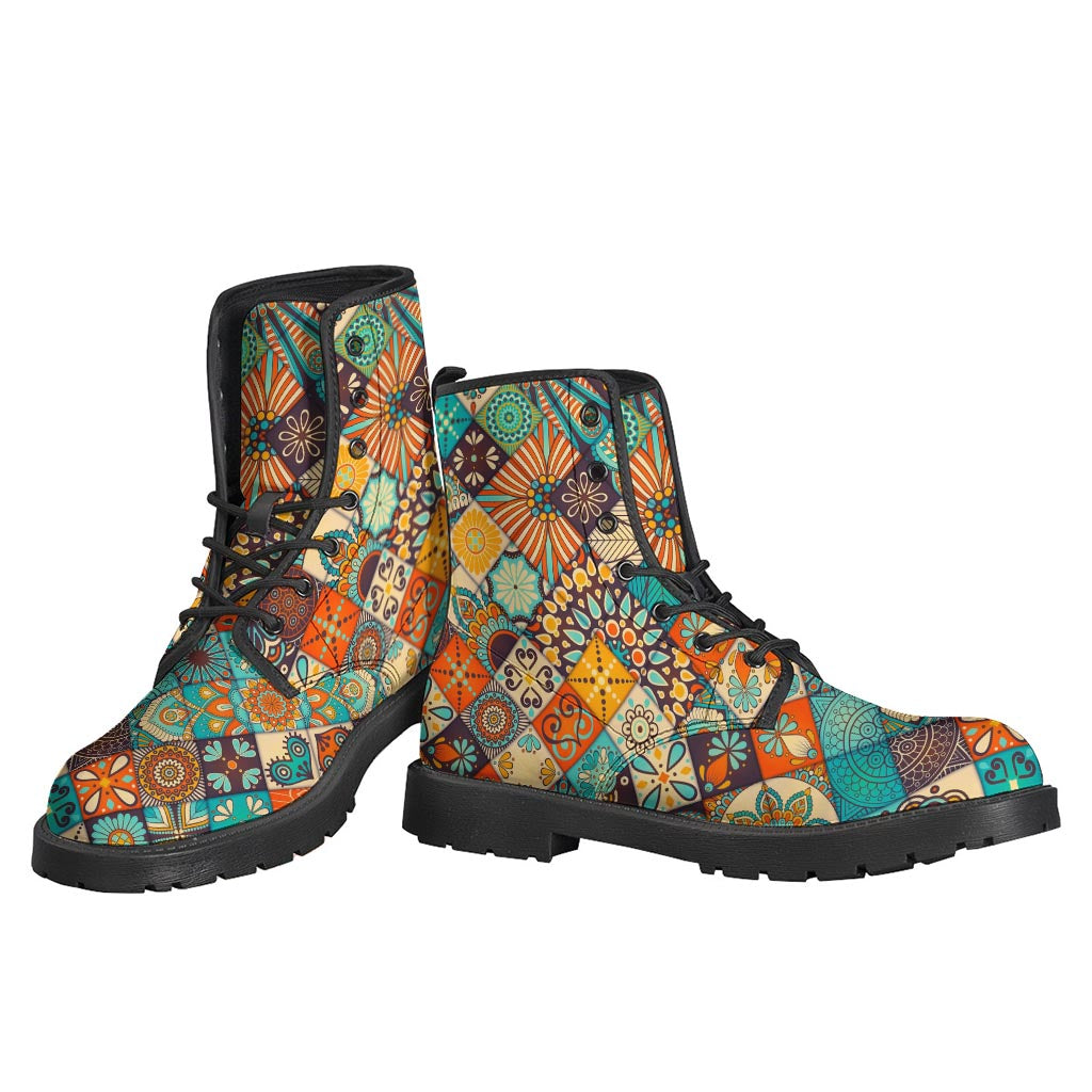 Embrace your inner bohemian spirit with these Vintage Mandala Bohemian Pattern Print Leather Boots. These lightweight and stylish boots are perfect for any free-spirited hippie looking to add a unique touch to their wardrobe. The intricate mandala pattern adds a touch of whimsy and artistry to these leather boots, while the comfortable design ensures all-day wearability. Whether you're heading to a music festival or just want to add a boho-inspired flair to your everyday look, these boots are sure to become a staple in your wardrobe. Step out in style and make a statement with these hippie Leather Lightweight Boots.