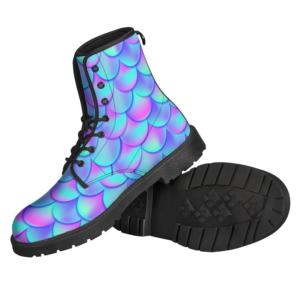 Groovy Mermaid Scales Leather Boots for Free-Spirited Hippies