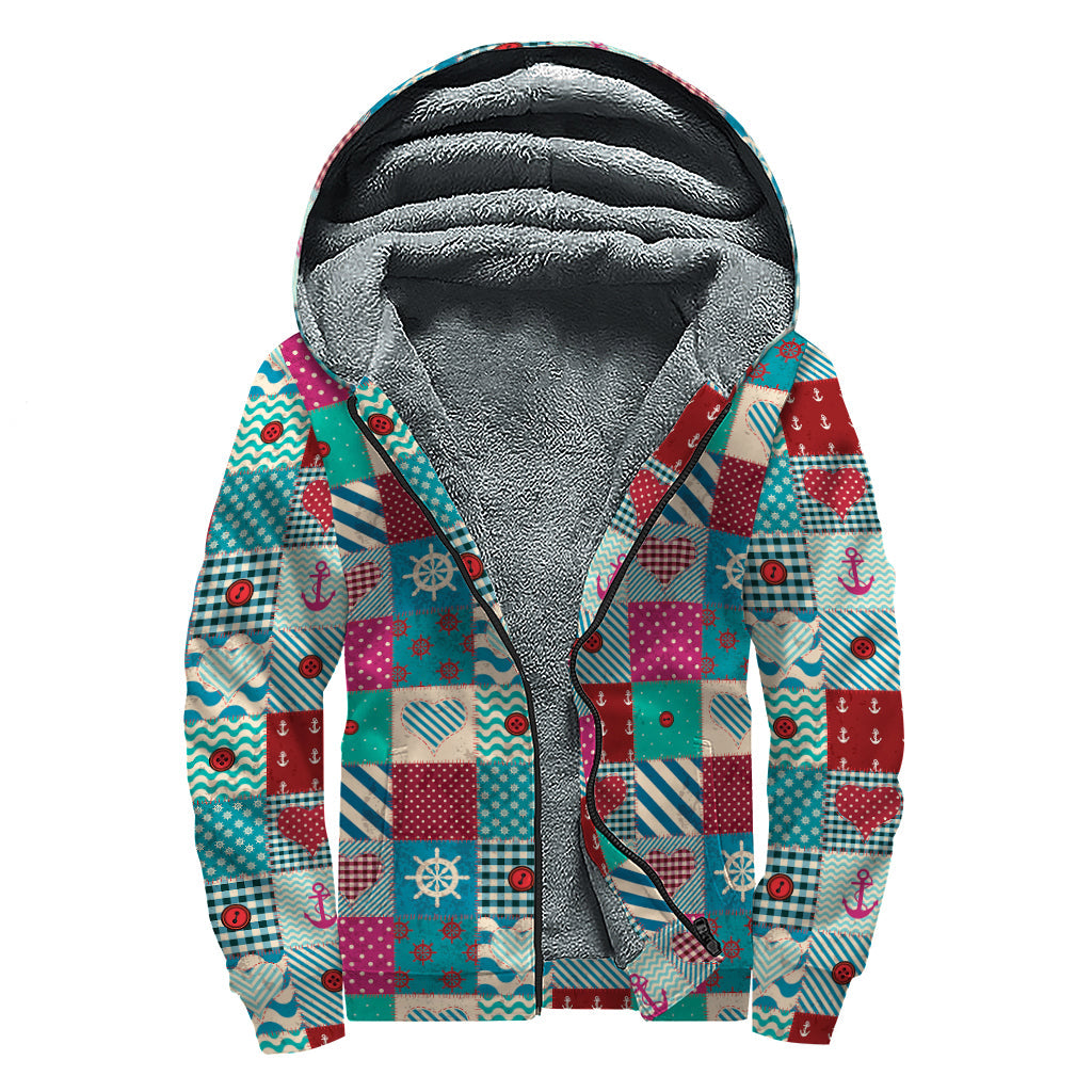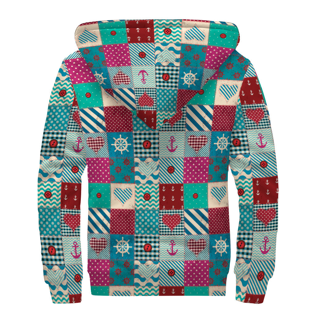 This Sherpa Lined Zip Up Hoodie is the epitome of hippie style with its retro nautical patchwork pattern print. The colorful and unique design is sure to turn heads wherever you go. The Sherpa lining will keep you warm and cozy on cooler days, making it perfect for festivals, camping trips, or just hanging out with friends around a bonfire. Embrace your inner free spirit and add some vintage-inspired flair to your wardrobe with this must-have piece for any hippie fashion enthusiast.
