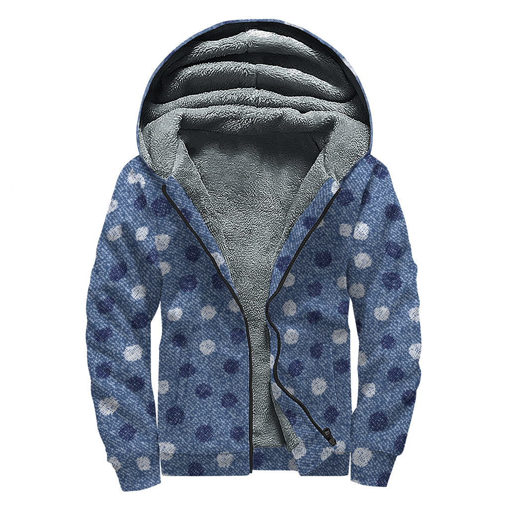 This Sherpa Lined Zip Up Hoodie is the perfect addition to any hippie-inspired wardrobe. The hoodie features a fun and quirky polka dot denim jeans pattern print that adds a unique and playful touch to any outfit. The Sherpa lining provides extra warmth and coziness, making it ideal for chilly days and nights. Whether you're attending a music festival, going for a hike, or just hanging out with friends, this hoodie is sure to keep you stylish and comfortable. Embrace your inner hippie with this cute and trendy Sherpa Lined Zip Up Hoodie.