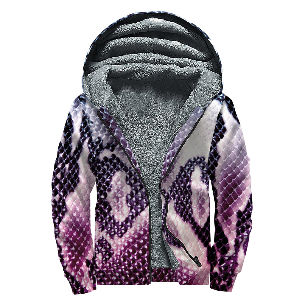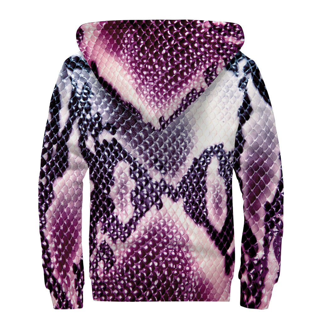 Groovy Purple and Blue Snakeskin Print Sherpa Lined Zip Up Hoodie