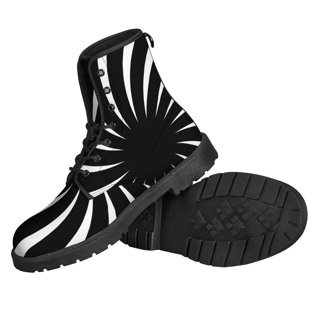 Unleash your inner hippie with these Black and White Vortex Swirl Print Leather Boots from GearFrost. These lightweight boots are perfect for the free-spirited individual looking to add some psychedelic flair to their wardrobe. The unique vortex swirl print adds a touch of whimsy to any outfit, while the sturdy leather construction ensures long-lasting durability. Whether you're hitting up a music festival or just want to stand out from the crowd, these hippie-inspired boots are sure to make a statement wherever you go.
