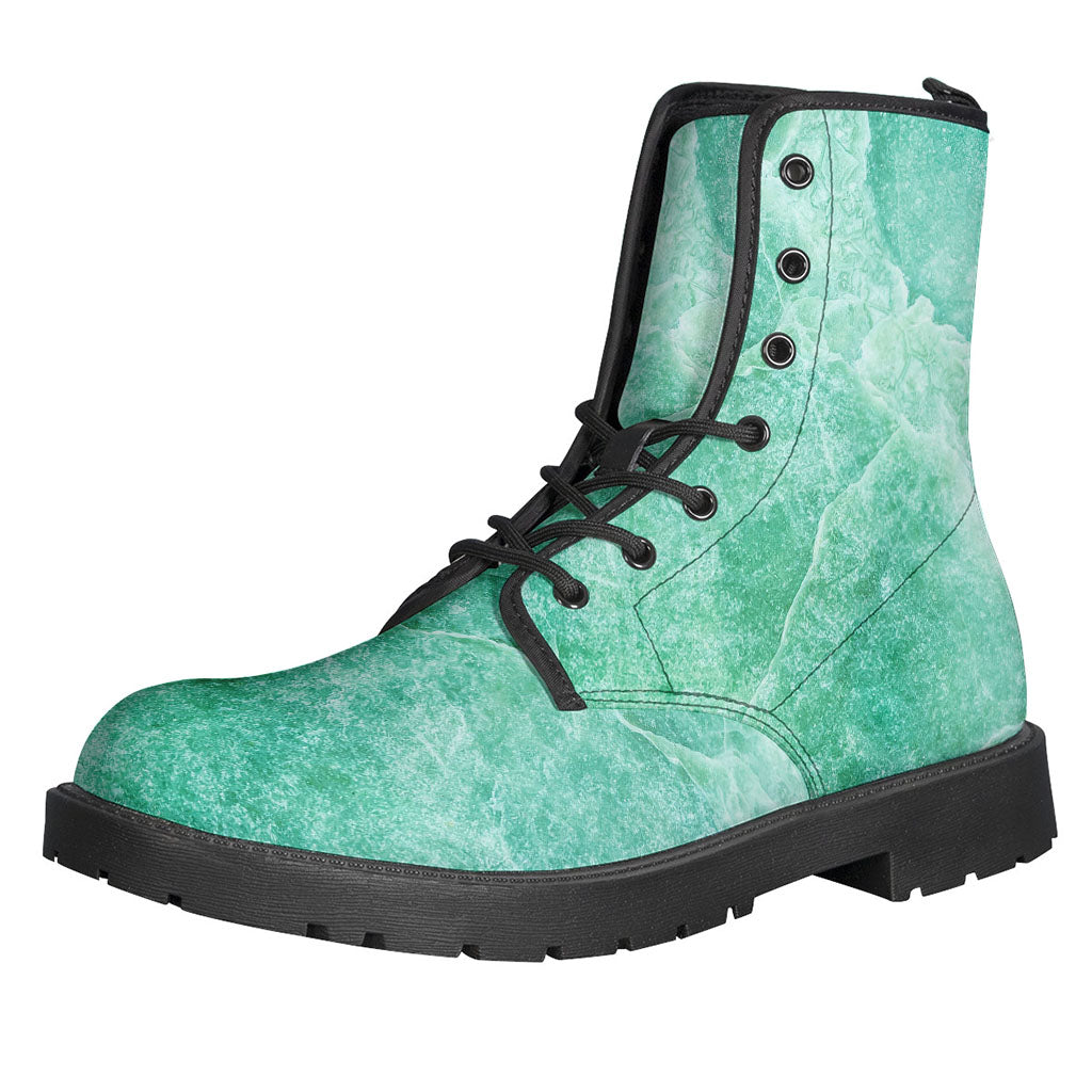 These Teal Marble Print Leather Boots are a stylish and unique addition to any hippie's wardrobe. Made from lightweight leather, these boots are perfect for everyday wear. The teal marble print adds a pop of color and personality, while the comfortable fit makes them ideal for long days of walking and exploring. With a bohemian, free-spirited vibe, these boots are the perfect finishing touch to any hippie-inspired outfit. Whether you're dancing at a music festival or just hanging out with friends, these boots are sure to make a statement.