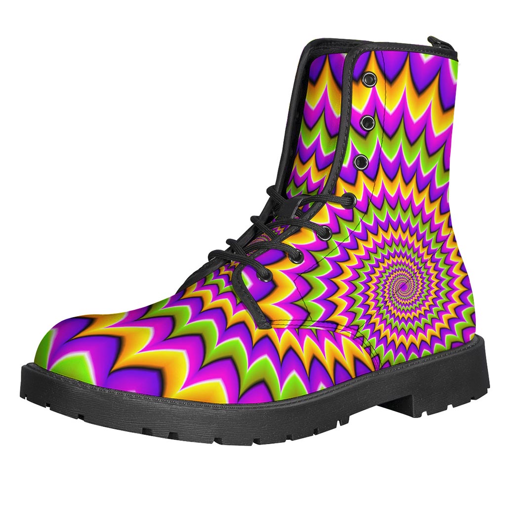 Groovy Threads: Twisted Colors Optical Illusion Leather Boots for the Ultimate Hippie Vibe - 1