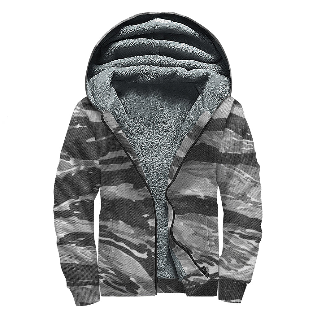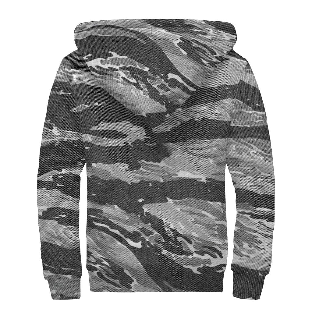 This Grey Tiger Stripe Camouflage Print Sherpa Lined Zip Up Hoodie is perfect for hippies looking to stay warm and stylish during cooler weather. The unique tiger stripe camouflage print adds a touch of bohemian flair, while the cozy sherpa lining provides extra warmth and comfort. The zip up design makes it easy to throw on over any outfit, whether you're headed to a music festival or just running errands around town. Stay cozy and look cool in this must-have hippie hoodie!