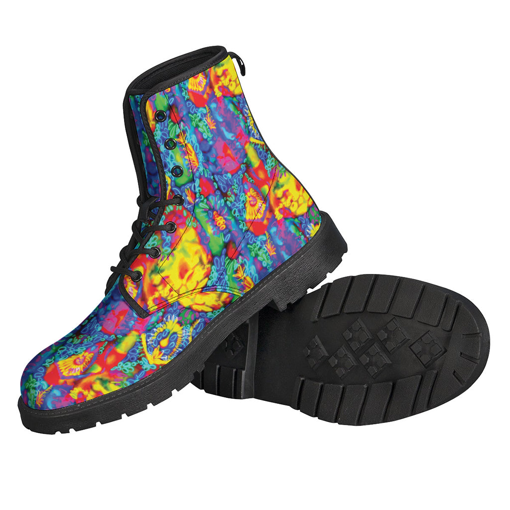 Groovy Vibes: Abstract Psychedelic Print Leather Boots for Free-Spirited Hippies