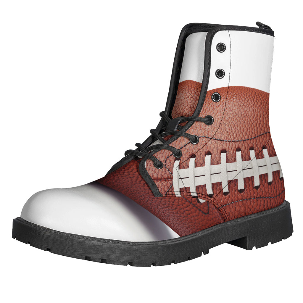These unique hippie-inspired boots are the perfect blend of style and comfort. Made from lightweight leather, they feature a cool American football ball print that sets them apart from traditional footwear. With a sturdy sole and comfortable fit, these boots are perfect for everyday wear and adding a touch of bohemian flair to any outfit. Whether you're heading to a music festival or just running errands around town, these boots will keep you looking and feeling great. Embrace your inner hippie with these eye-catching Leather Lightweight Boots!