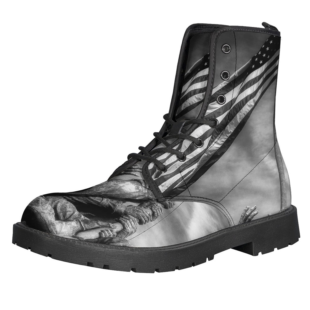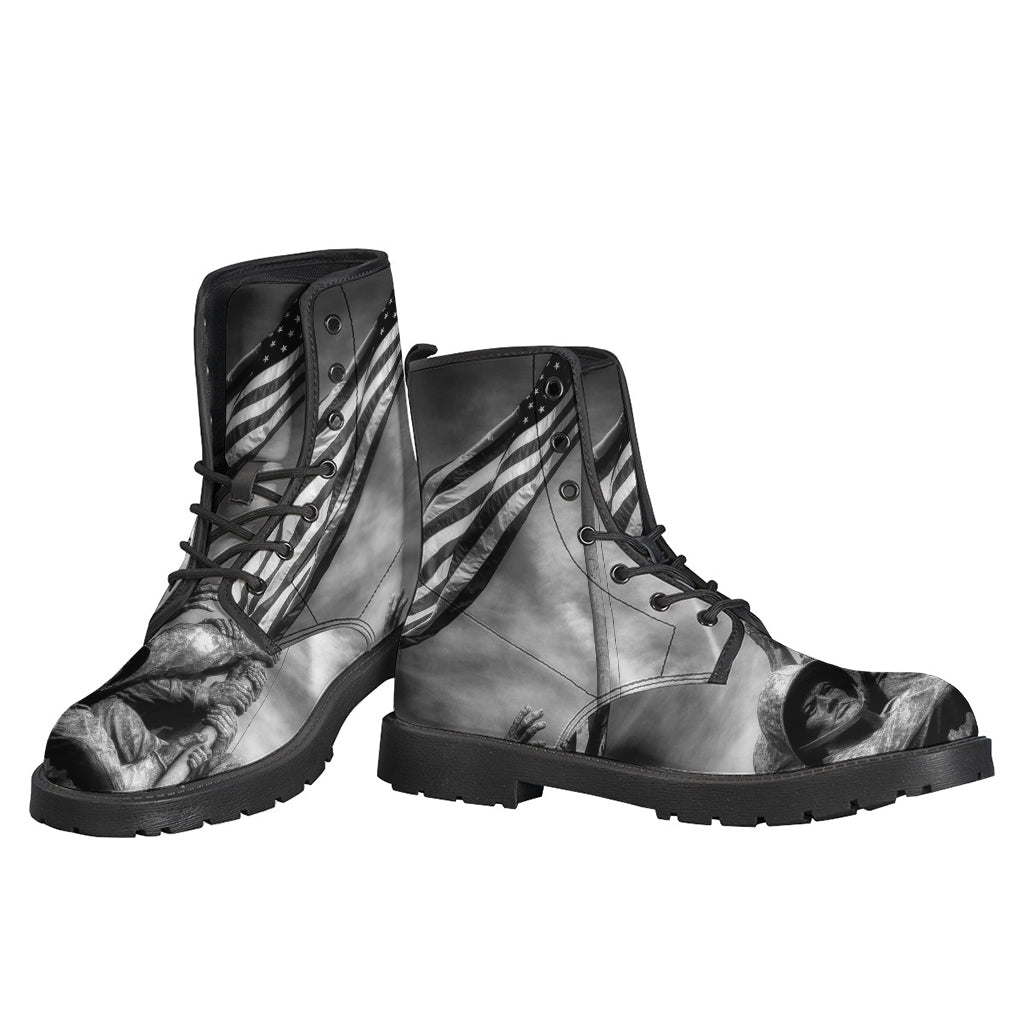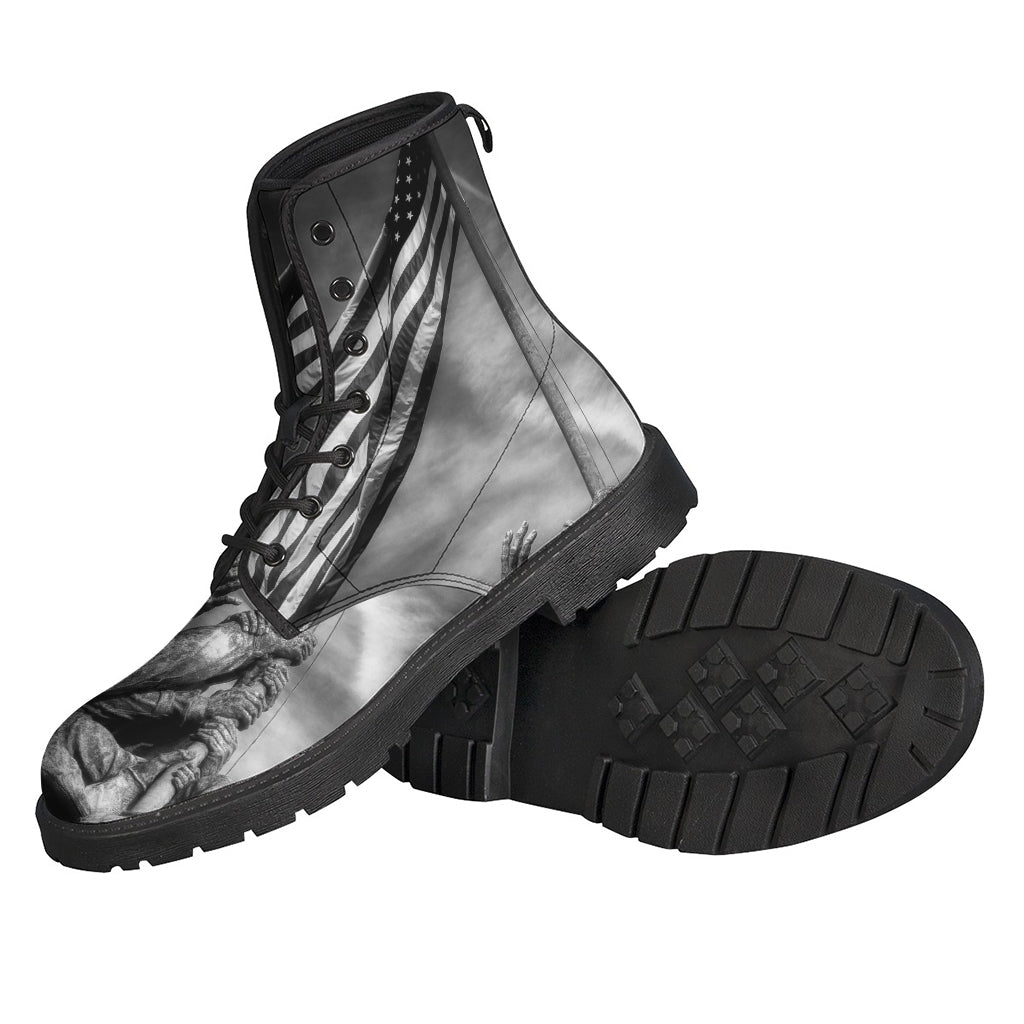 Embrace your inner free spirit with these hippie-inspired Leather Lightweight Boots from Gear Frost. Featuring a unique American War Memorial print, these boots are perfect for expressing your individuality and standing out from the crowd. Made with high-quality leather, these boots are not only stylish but also durable and comfortable for all-day wear. Channel your inner hippie vibes and step out in style with these one-of-a-kind boots.