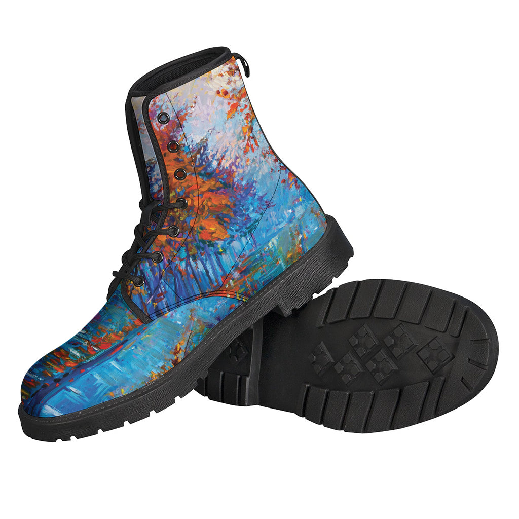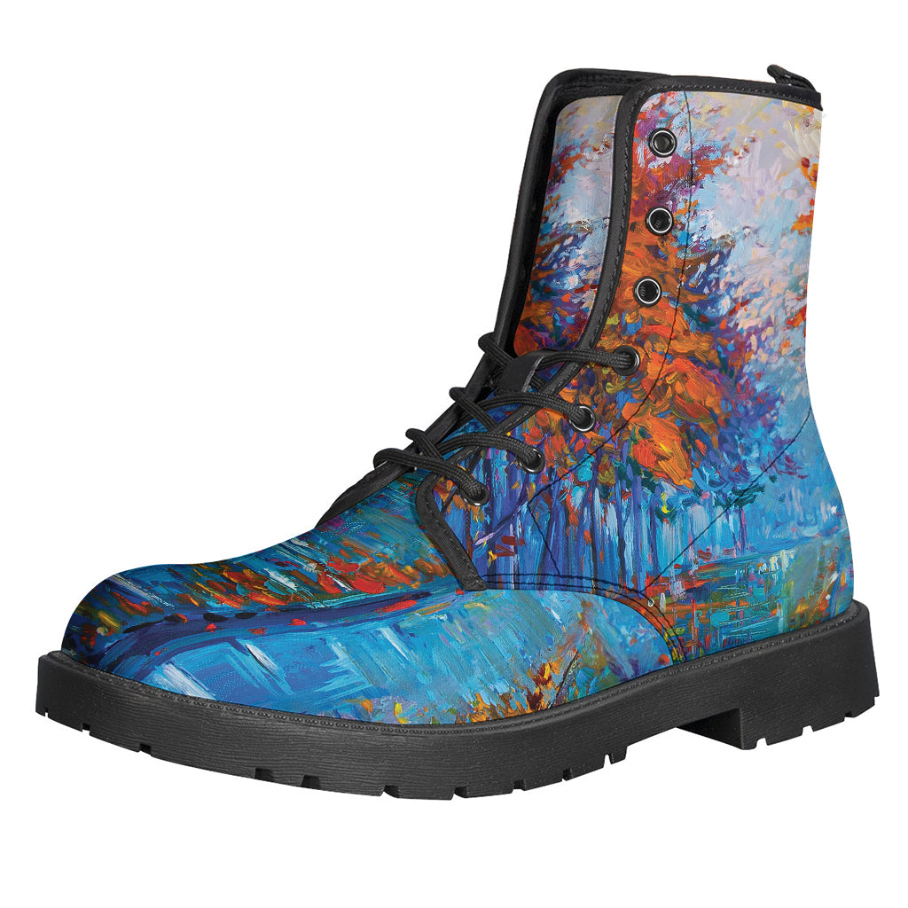 Embrace your inner free spirit with these Hippies Leather Lightweight Boots. Featuring a unique autumn painting print on high-quality leather, these boots are perfect for those who love to stand out from the crowd. The lightweight design makes them comfortable for all-day wear, while the durable construction ensures they will last for years to come. Whether you're headed to a music festival, hitting the trails, or just running errands around town, these boots will add a touch of bohemian flair to any outfit. So lace up these Hippies boots and step out in style!