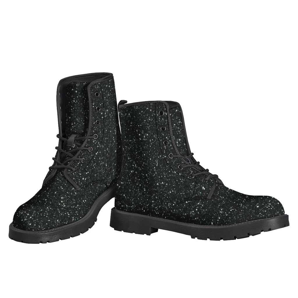 These Bohemian-inspired Leather Lightweight Boots are perfect for any modern-day hippie looking to add a touch of flair to their wardrobe. Made from high-quality leather, these boots feature a unique Not Real Glitter print design that sets them apart from traditional leather boots. The lightweight construction makes them perfect for concerts, festivals, or everyday wear, while the sturdy sole provides comfort and support for all-day wear. These boots are a must-have for any free spirit looking to make a statement with their footwear.