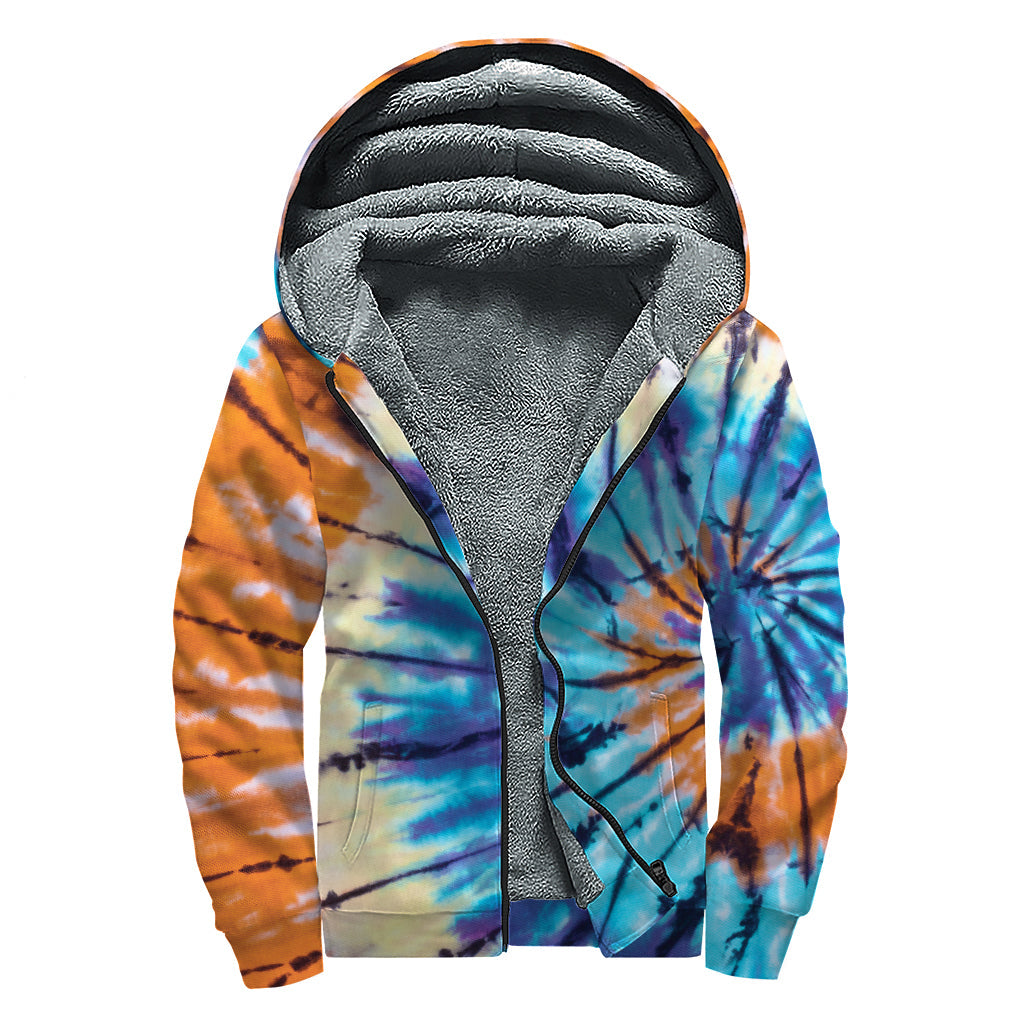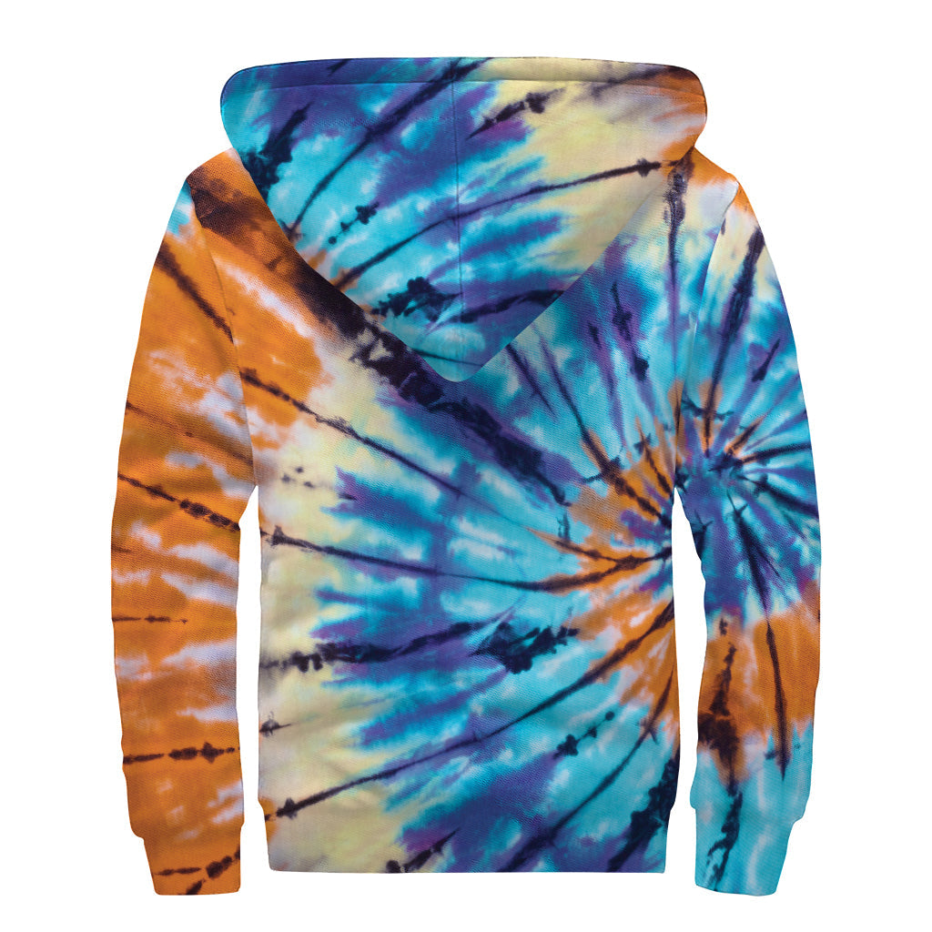 This Sherpa Lined Zip Up Hoodie is the perfect piece for those who embrace the hippie style. The blue and orange tie dye print gives off a fun and free-spirited vibe, while the cozy sherpa lining adds warmth and comfort. The zip-up design makes it easy to layer over your favorite tie dye t-shirts or flowy blouses. Whether you're heading to a music festival or just hanging out with friends, this hoodie is sure to be a staple in your hippie-inspired wardrobe.