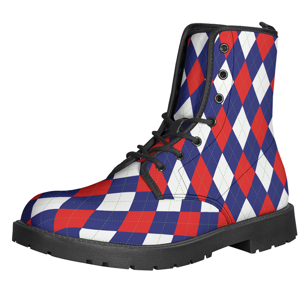 Embrace your inner free spirit with these Hippies Leather Lightweight Boots. Featuring a bold blue, red, and white argyle pattern print, these boots are perfect for adding a pop of color to any outfit. The lightweight construction ensures all-day comfort, while the durable leather material provides long-lasting wear. Whether you're channeling your inner flower child or just looking to make a statement, these boots are a must-have for any hippie-inspired wardrobe. Kick back, relax, and let your style shine with these vibrant and stylish boots.