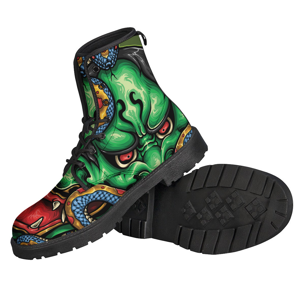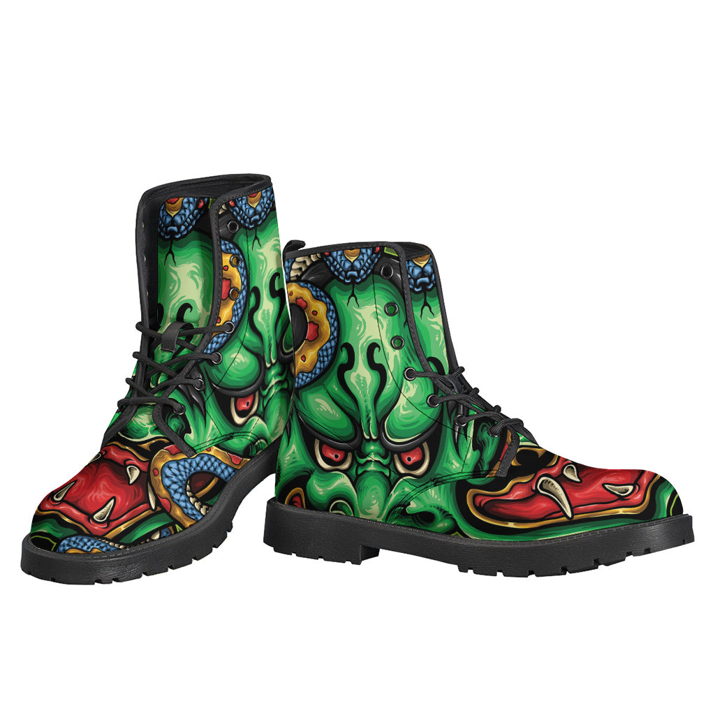 Embrace your inner hippie spirit with these Japanese Oni Demon with Snake Print Leather Boots from Gear Frost. Made with lightweight leather material, these boots are perfect for those who want to make a bold fashion statement while staying comfortable all day long. The unique Oni Demon and Snake print adds a touch of edginess to your outfit, giving you a one-of-a-kind look that is sure to turn heads wherever you go. Whether you're heading to a music festival or just stepping out for a casual day, these boots are the perfect addition to your bohemian wardrobe. Say goodbye to boring footwear and step into these stylish hippie boots today!