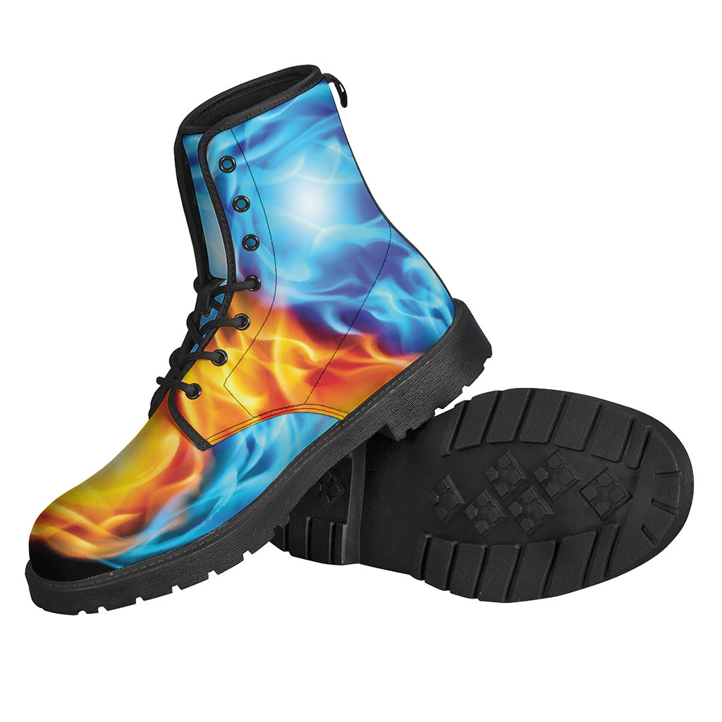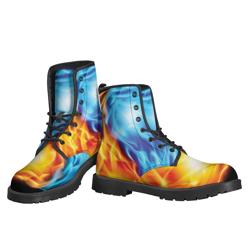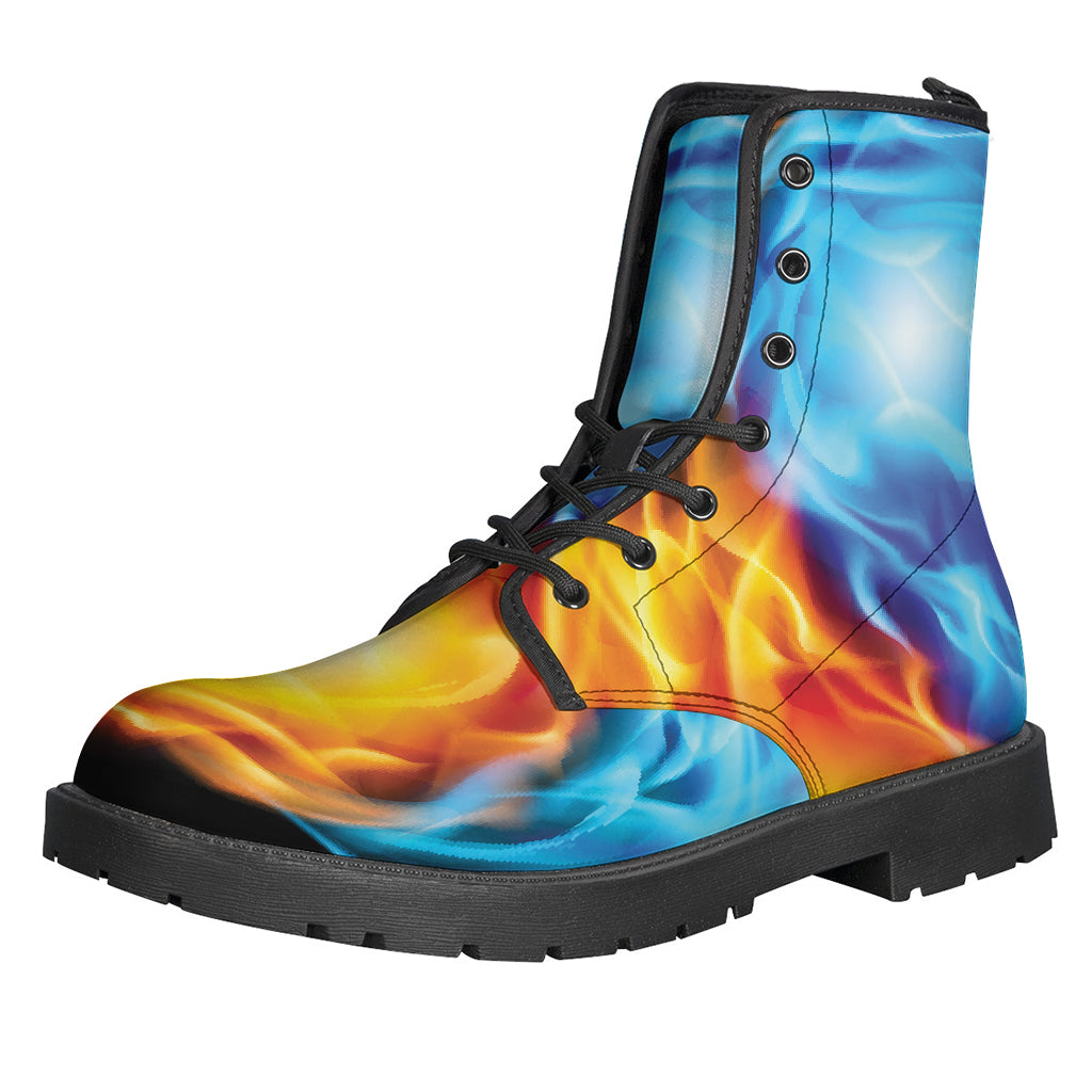 These hippie Leather Lightweight Boots are a unique and stylish footwear option for those who love to embrace the hippie style. Featuring a striking red and blue fire yin yang print, these boots are sure to make a statement wherever you go.