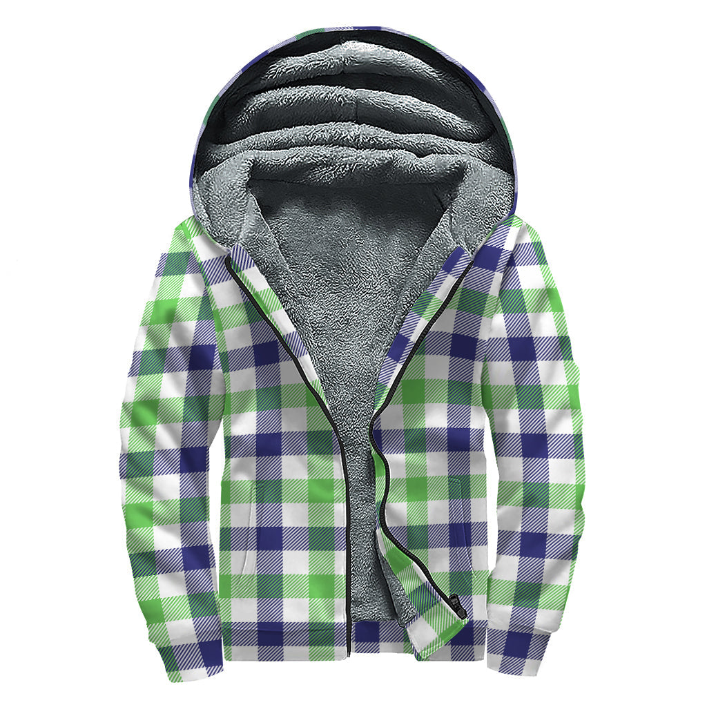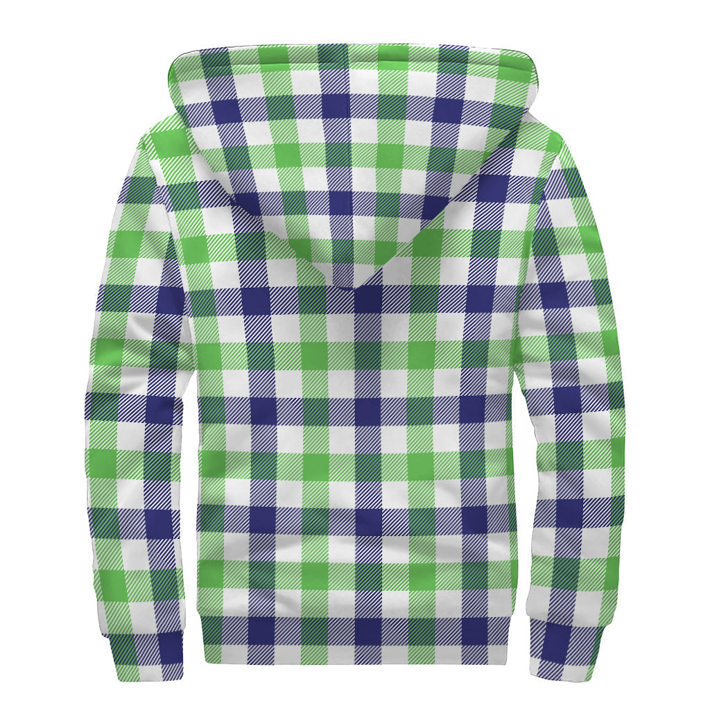 Groovy Vibes: White, Navy, and Green Plaid Sherpa Lined Zip Up Hoodie