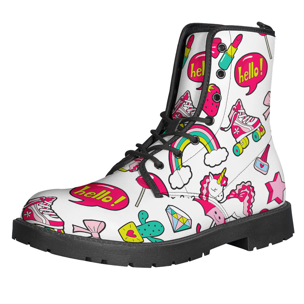 Get your groove on with these stylish hippie Leather Lightweight Boots featuring a whimsical white girly unicorn pattern print. Made from high-quality leather, these boots are not only fashionable but also durable and comfortable to wear all day long. Perfect for adding a touch of bohemian flair to your outfit, these boots are a must-have for any free-spirited fashionista. Whether you're heading to a music festival or just hanging out with friends, these hippie Leather Lightweight Boots will surely make a statement wherever you go.