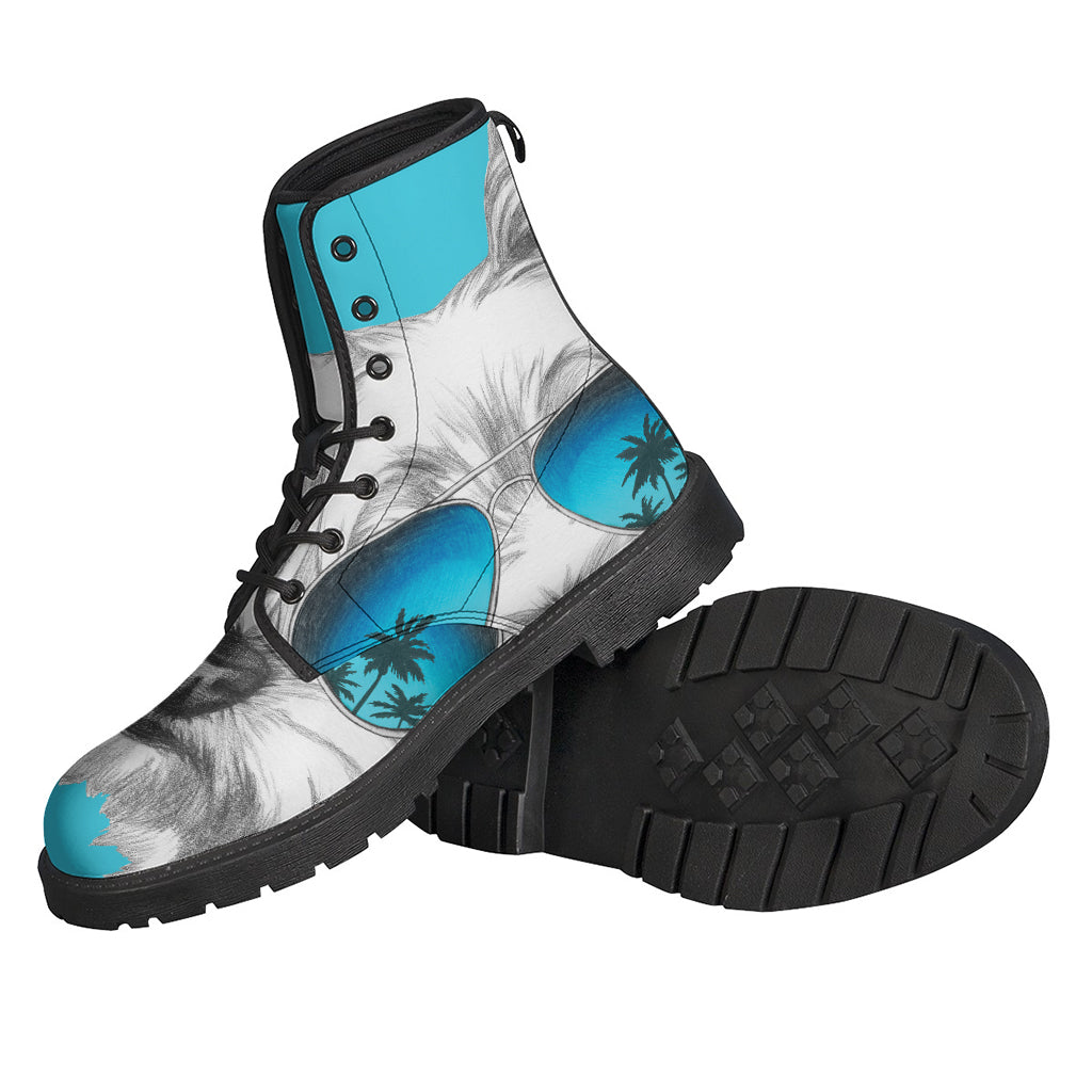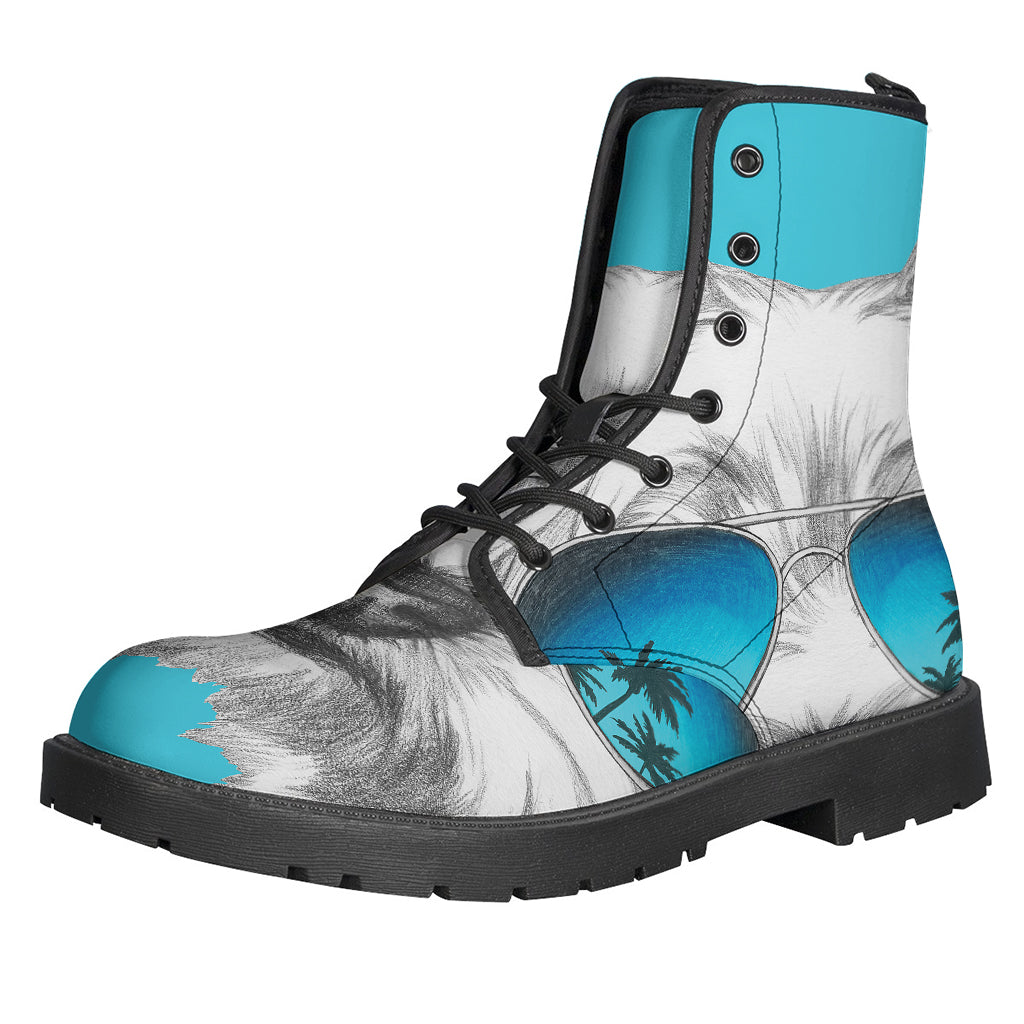 Groovy Yorkie with Sunglasses Leather Boots for Hipsters - 1