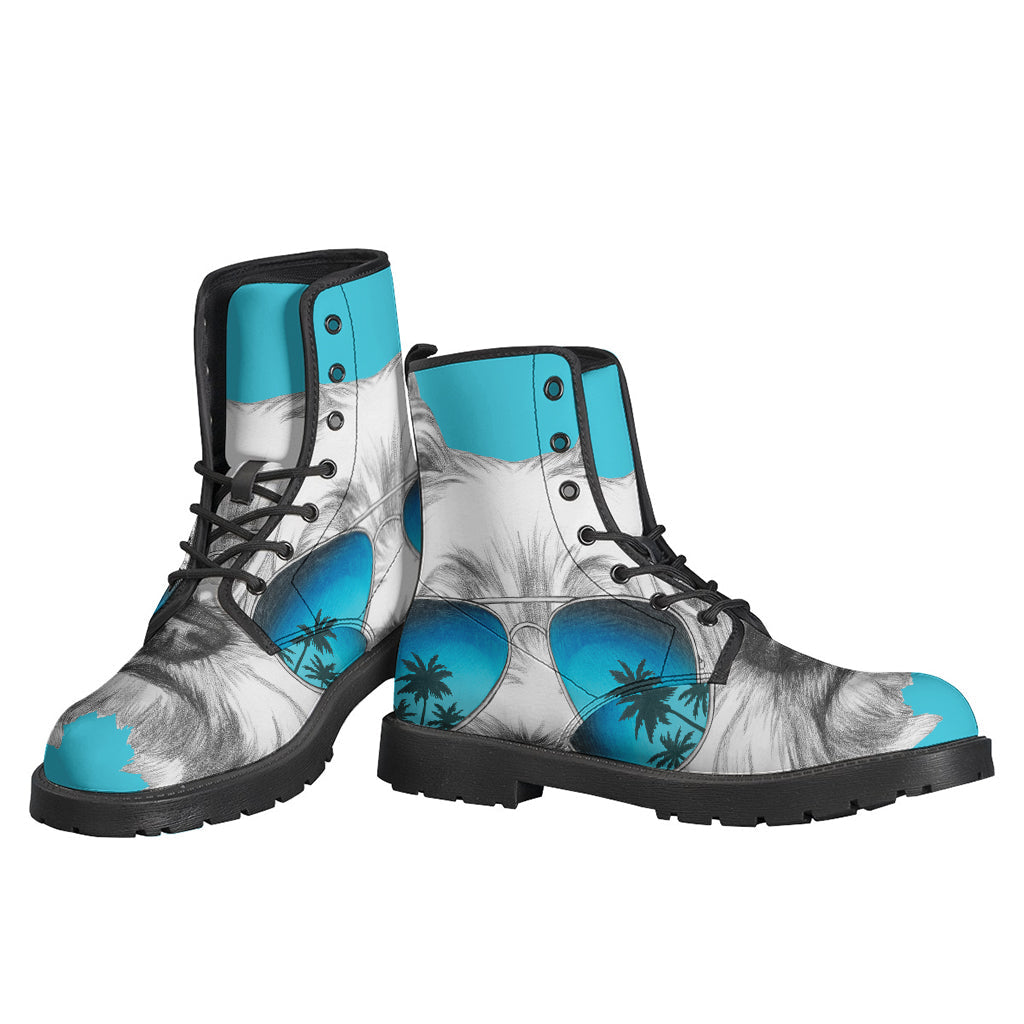 Groovy Yorkie with Sunglasses Leather Boots for Hipsters - 2