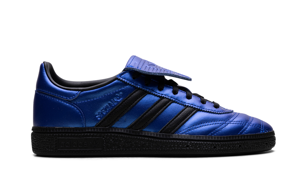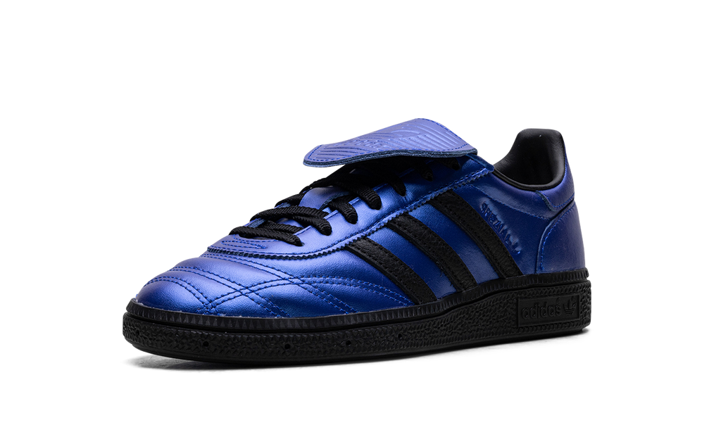 Unfold a new chapter of a classic with the Adidas Handball Spezial LT Wmns, the "Long Tongue Legend," in "Lucid Blue Black." Reimagined with a nod to vintage football boots, this women's exclusive features a soft leather upper in a metallic Lucid Blue contrasted with Core Black accents. The standout fold-over long tongue, stamped with the Trefoil logo, gives this casual favorite a distinctive, old-school twist. Step into a comfortable icon with a stylish edge.