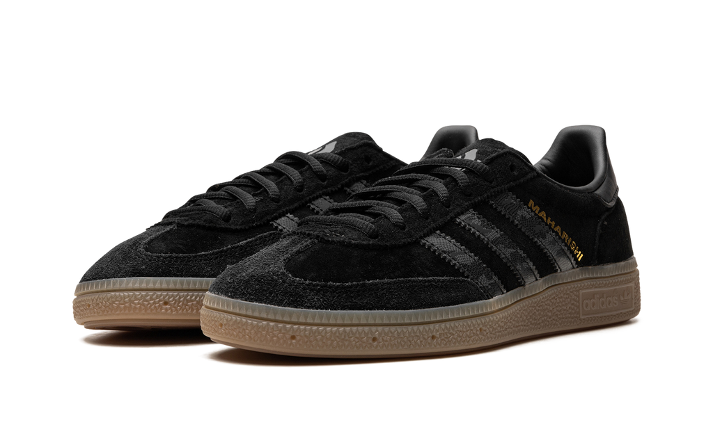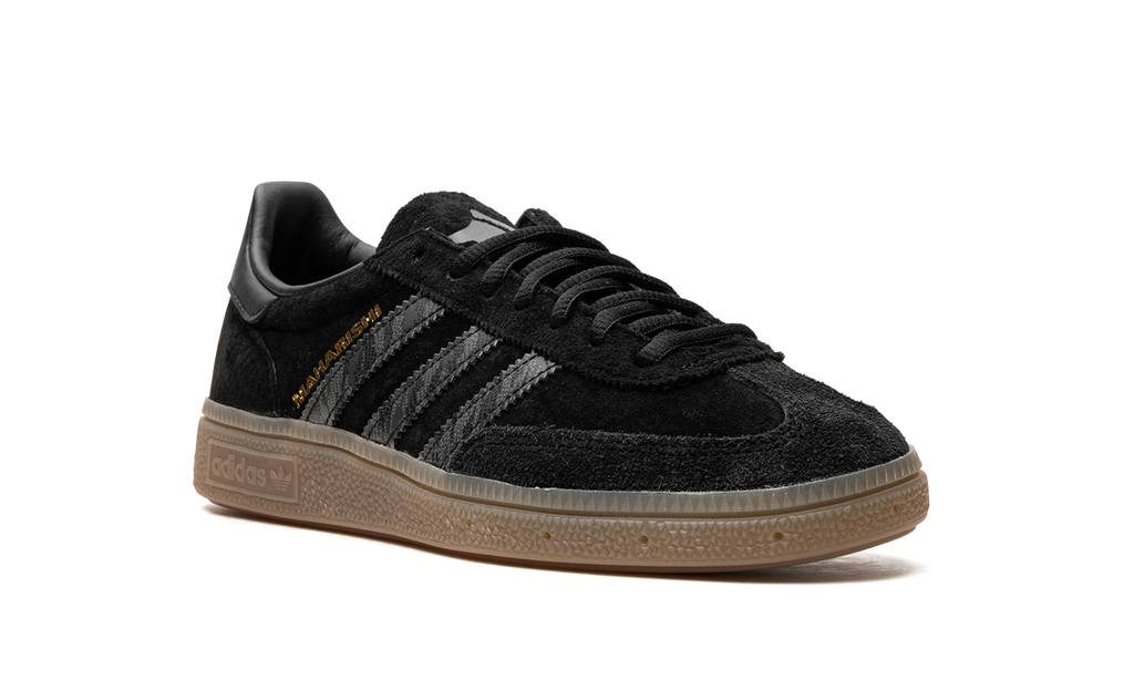 The Maharishi x adidas Handball Spezial "Black/Gum" is a collaboration by the London-based clothing brand and adidas on the retro-inspired sneaker. Originally released in 1979 for handball players, the adidas Handball Spezial is now beloved for its timeless look and easy-to-wear style. Here, Maharishi updates the silhouette with a black suede construction with tonal leather Three Stripes and gold “Maharishi” branding on the side. A subtle snakeskin texture is also added to the Three-Stripes on each side. More “Maharishi” branding can be found on the tongue, as well. Underfoot, a gum rubber sole gives the sneaker a vintage flair. Release date: October 14, 2023