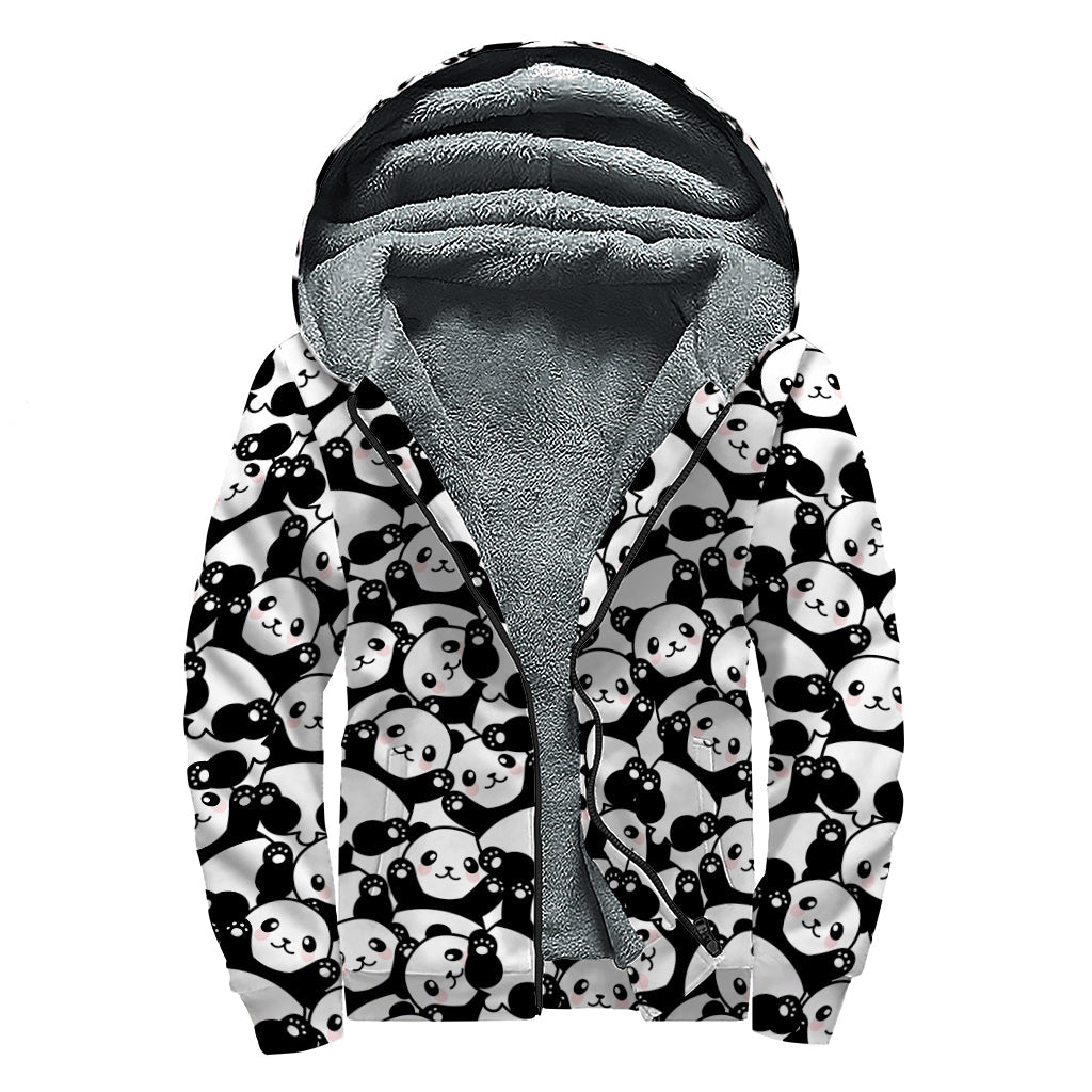 This Sherpa Lined Zip Up Hoodie features a cute and happy panda pattern print that is perfect for the free-spirited hippie in you. The hoodie is not only stylish but also cozy and warm, thanks to the soft Sherpa lining inside. The zip-up design makes it easy to layer over your favorite tie-dye or flowy tops for a bohemian look. Whether you're heading to a music festival or just running errands around town, this hoodie will keep you comfortable and looking effortlessly cool. Embrace your inner hippie vibes with this unique and fun piece of outerwear.