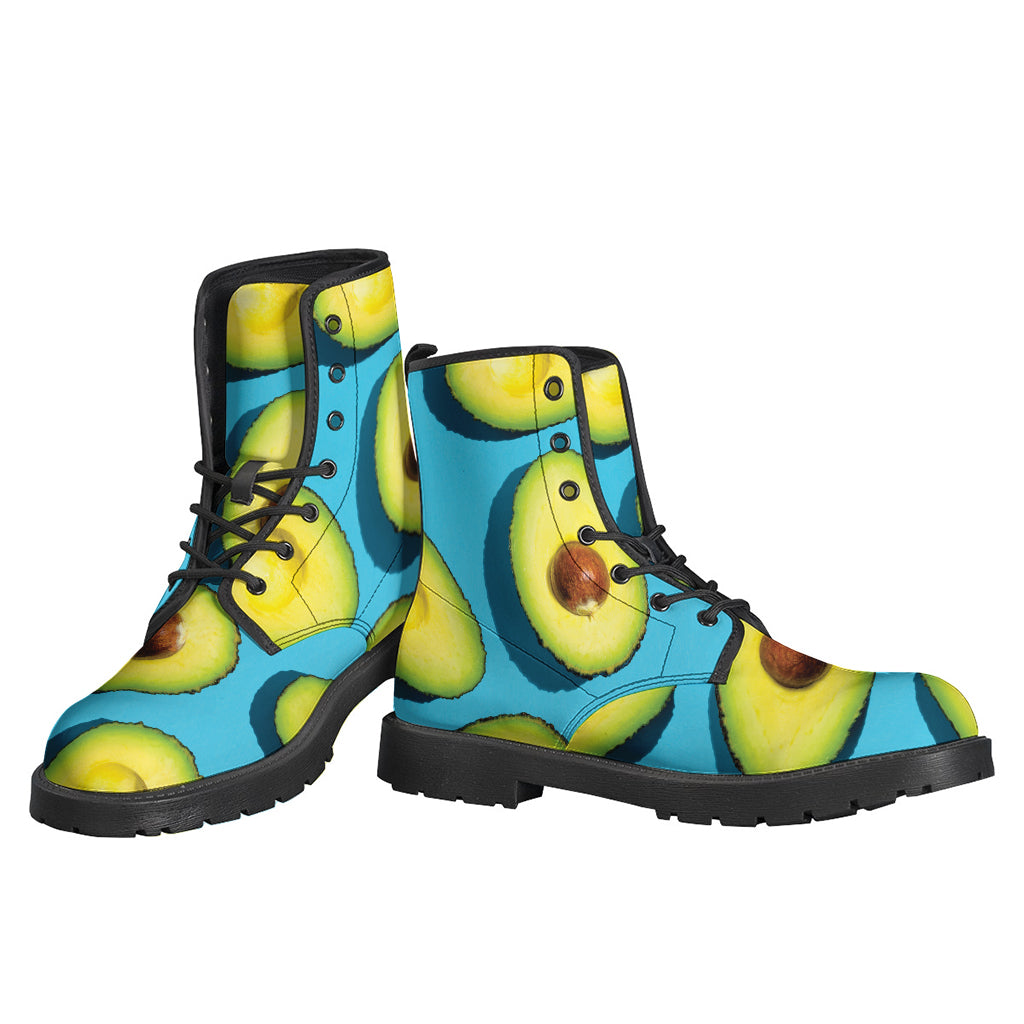 Hippie Vibes: Avocado Cut in Half Print Leather Boots