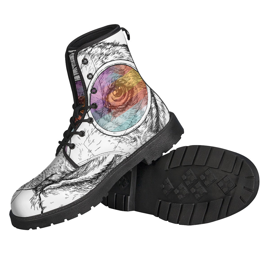 These unique and stylish Leather Lightweight Boots are perfect for any hippie fashion enthusiast. The boots feature a fun, colorful design of a hipster beagle wearing glasses, adding a playful and quirky touch to any outfit. Made from high-quality leather, these boots are not only fashionable but also durable and comfortable for all-day wear. Whether you're heading to a music festival, a day out in nature, or just want to add a bohemian flair to your everyday look, these hippie-inspired boots are sure to make a statement. Available in a range of sizes, these boots are a must-have for anyone who loves to embrace their inner hippie spirit.