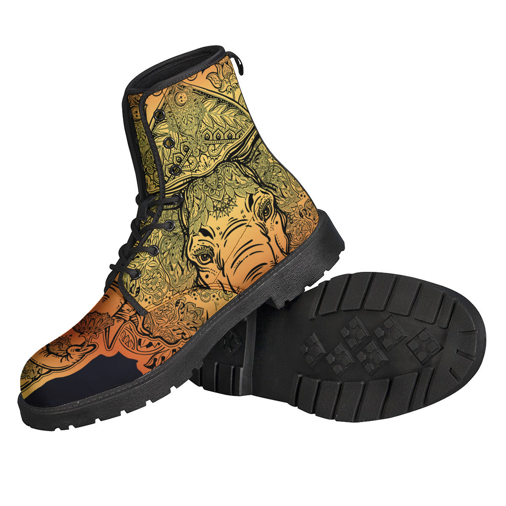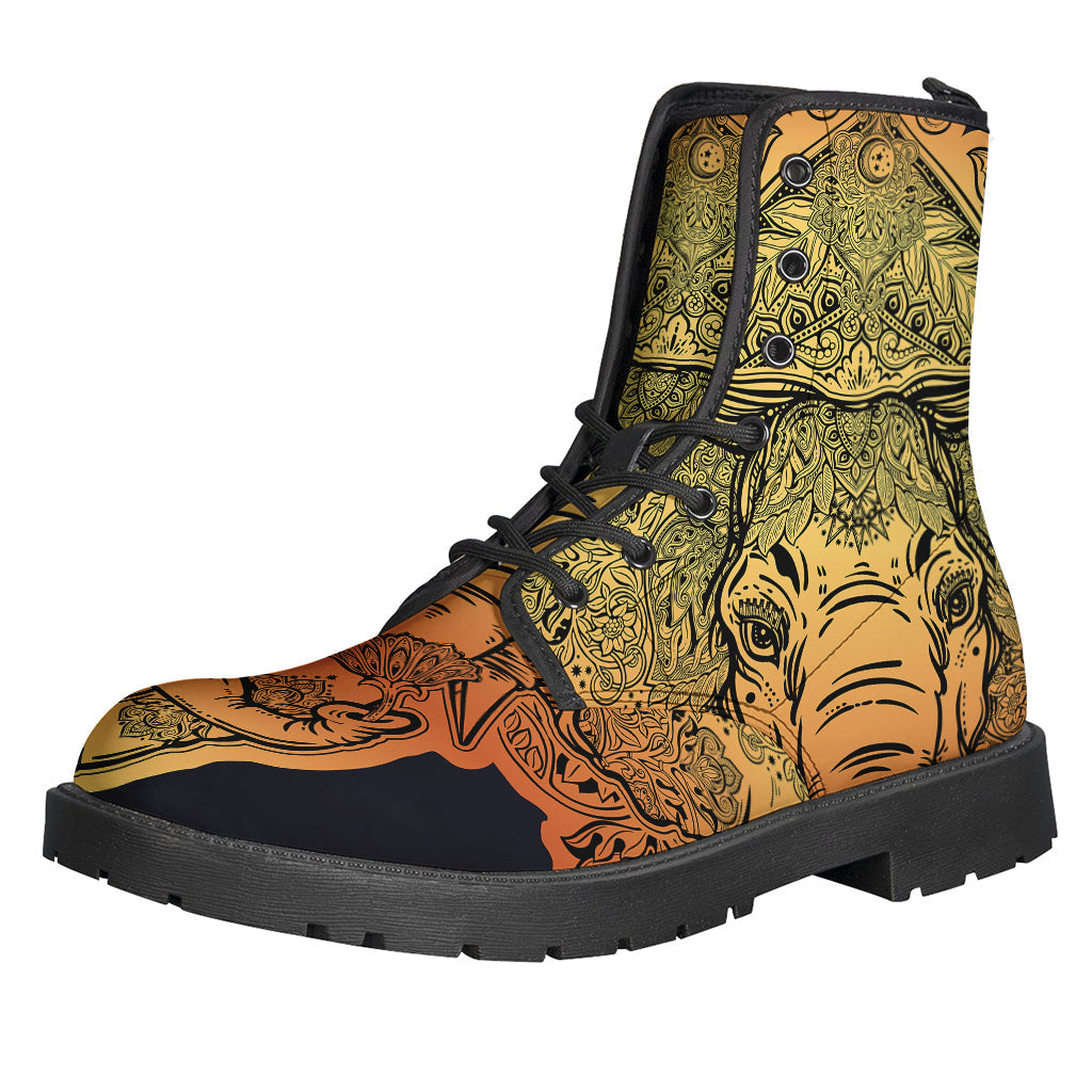 Indian Tribal Spiritual Elephant Print Leather Boots for Groovy Hippies - 1