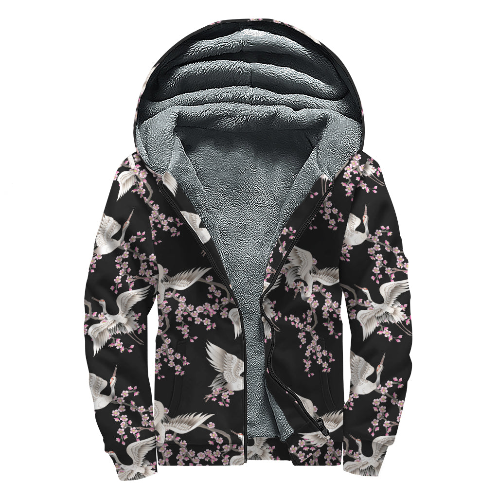 Get cozy and chic with our Japanese Crane Bird Pattern Print Sherpa Lined Zip Up Hoodie. This stylish piece is the perfect addition to any hippie's wardrobe, featuring a unique crane bird pattern that adds a touch of bohemian flair. The sherpa lining provides ultimate warmth and comfort, making it perfect for chilly days and nights. The zip-up design makes it easy to layer over your favorite t-shirts or dresses, while the hood adds an extra layer of coziness. Made with high-quality materials, this hoodie is sure to become a staple in your hippie wardrobe.