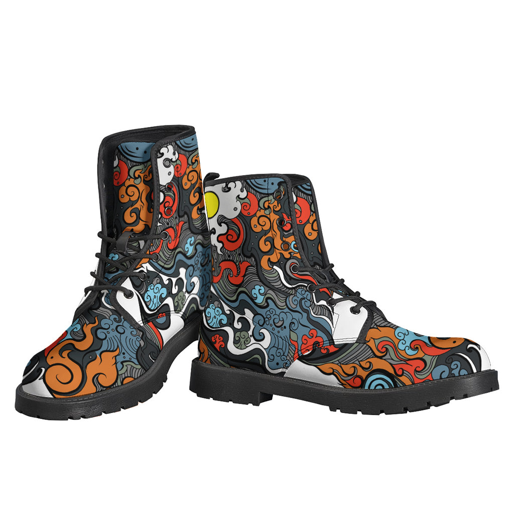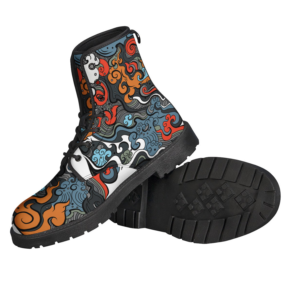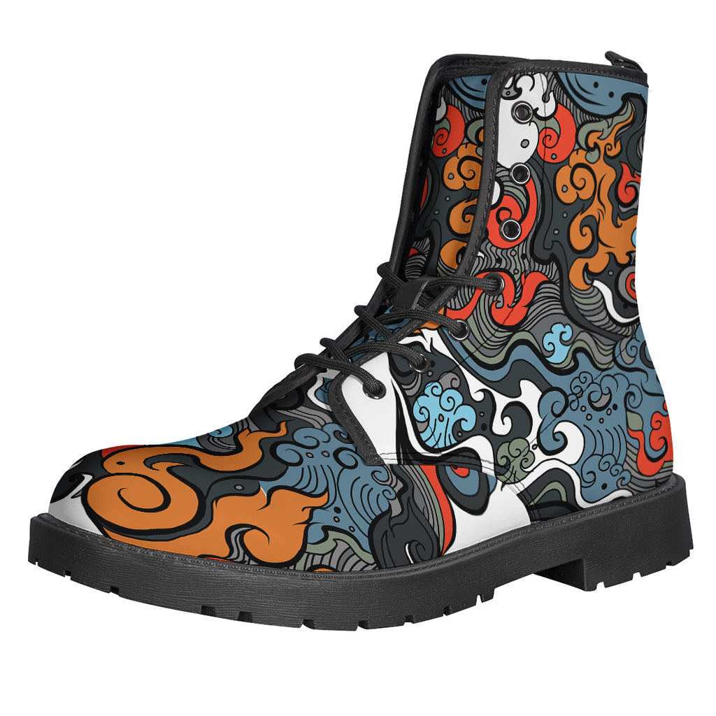 These Japanese Elemental Tattoo Print Leather Boots are the perfect footwear for the free-spirited hippie at heart. Featuring a unique tattoo-inspired design, these boots are crafted from lightweight leather, making them comfortable for all-day wear at music festivals, outdoor adventures, or everyday casual outings. The intricate detailing on the boots adds a touch of bohemian style to any outfit, while the durable construction ensures long-lasting quality. Embrace your inner hippie with these stylish and versatile leather boots that are sure to turn heads wherever you go.