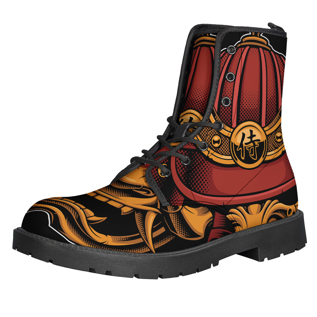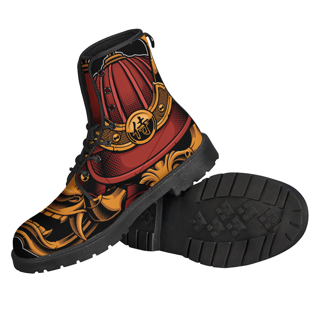 These Hippies Leather Lightweight Boots are a unique and stylish choice for any free-spirited individual looking to make a statement with their footwear. Featuring a striking Japanese samurai warrior mask print on the leather, these boots exude a sense of adventure and creativity.